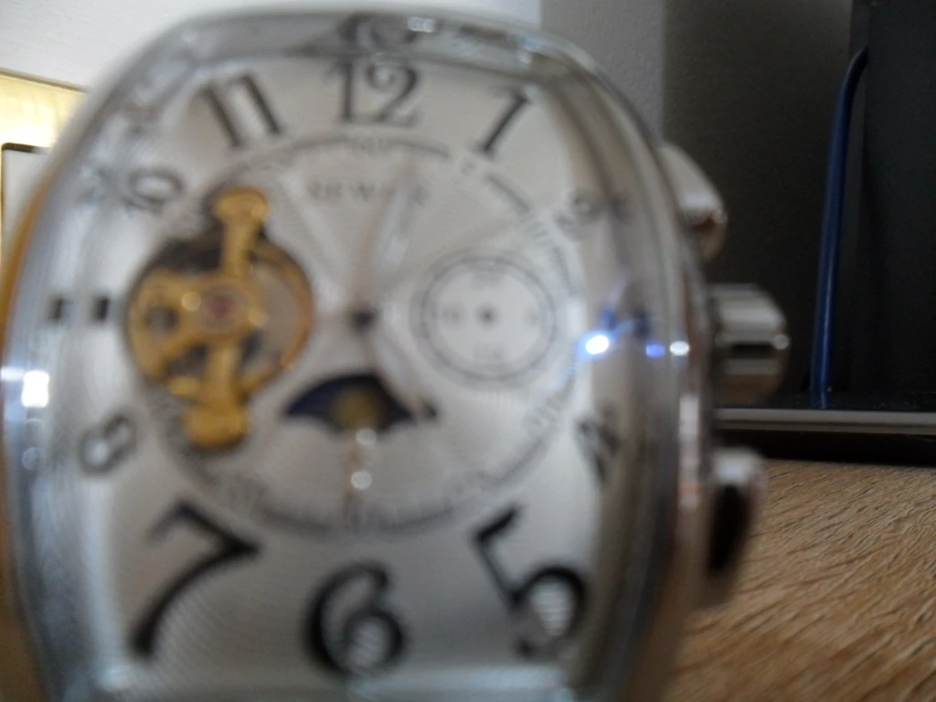 великолепное качество. сзади часов дыра с маятником. спереди в окне слева тоже всё время крутится какая то ерунда. стрелки могли бы сделать чёрные или коричневые, а не белые. ремешок типо кожа.