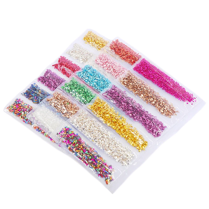 Модные красочные блестящие стеклянные камни, 6 ячеекпакет, 3D дизайн ногтей своими руками, украшения, хлопья для ногтей, сверкающие очаровательные камни