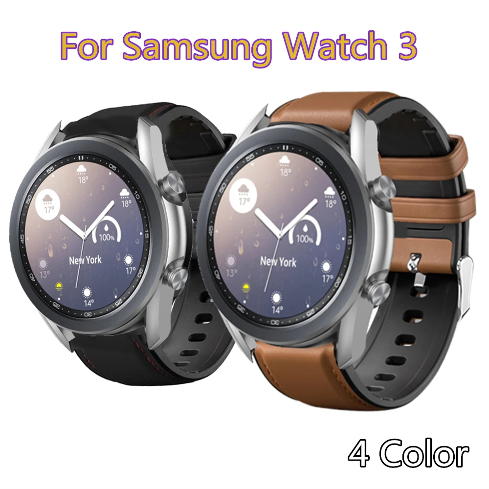 Ремешок кожаный и силиконовый для смарт-часов, спортивный браслет для Samsung Galaxy Watch 3 41 мм 45 ммActive 3 2 Gear S3 2220 мм