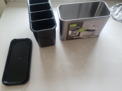 Штука очень полезная и стильная! , отдельно снимаются пластиковый поддон и внутренность, чтобы помыть. Но как по мне, то цена завышена. Думала будет более тяжелая и массивная. Но она оказалась достаточно легкой. Отлично смотрятся на кухне с такими же под металл солонкой и перечницей! В общем покупкой довольна!