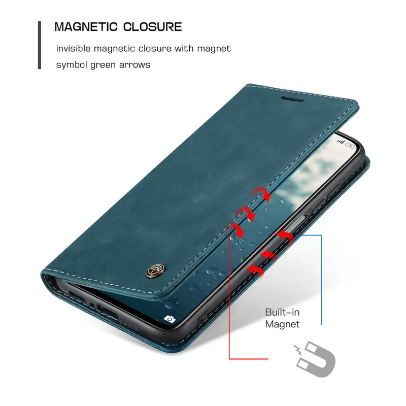 Phone case material looks really good, like described. Negatives: black phone rubber holder is not too tight, magnet is not sufficiently strong to not open accidentally. Magnet is without phone not sufficiently strong, with phone inserted it's even worse.