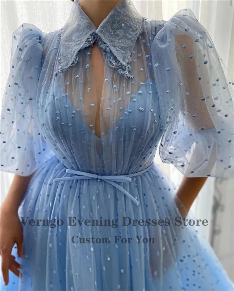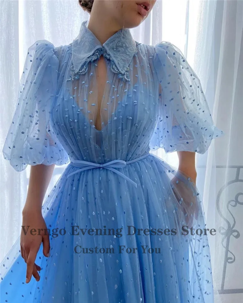 Платье детское вечернее из тюля, с пышными рукавами и высоким воротом, 2021