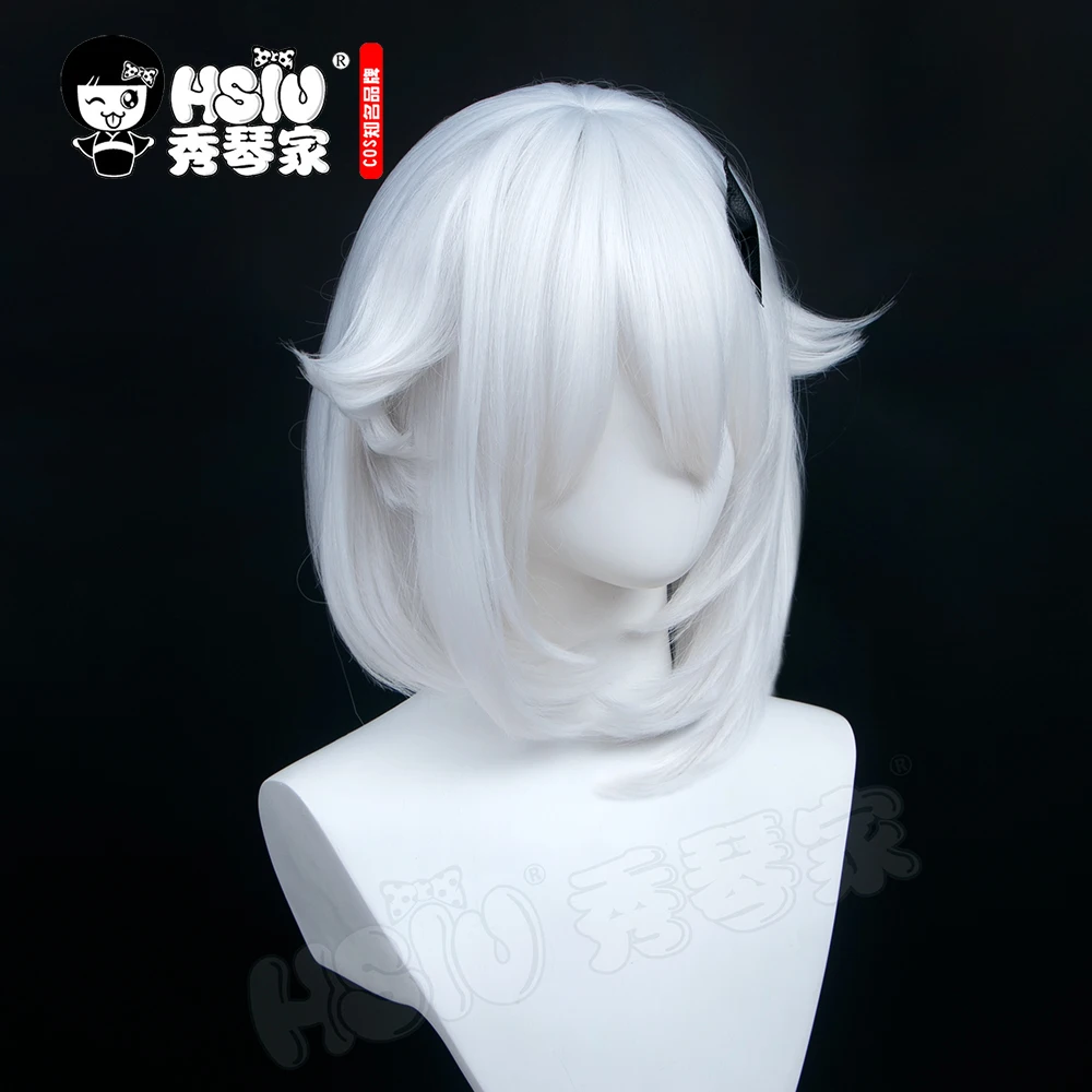 Парик для косплея HSIU Genshin Impact, паймон, белые короткие волосы, термостойкие синтетические волосы, бесплатная шапочка Подарочный парик, Бесплатные аксессуары для волос