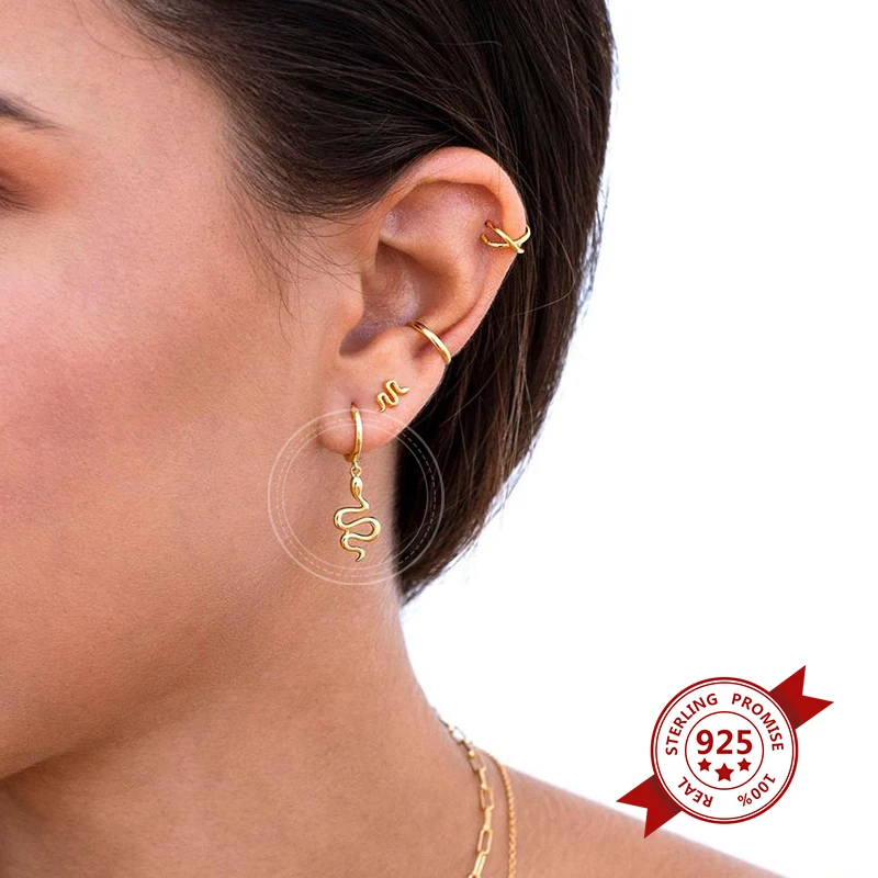 Серьги-кольца Snake Huggie женские, длинные серьги-кольца из стерлингового серебра 925 пробы, серьги панк стиль серьги в виде животных Ювелирные изделия