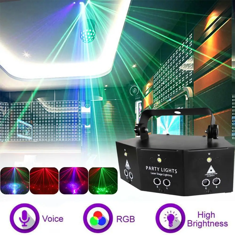 * 1. 4 + 64 узора, дискотечный светильник s может обеспечить красный, зеленый и синий светильник. Светильник имеет шаблон + стробоскопическую функцию, полную динамики. Создание счастливой атмосферы для семьи и вечеринок.