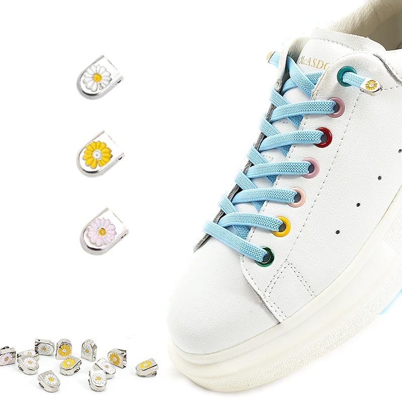 1 пара шнурков без галстука Маргаритка Кнопка быстрая металлическая пряжка эластичные шнурки для детей Взрослые спортивные ботинки ленивые белые шнурки