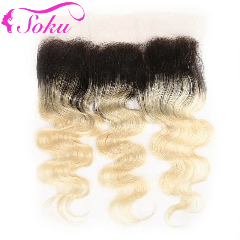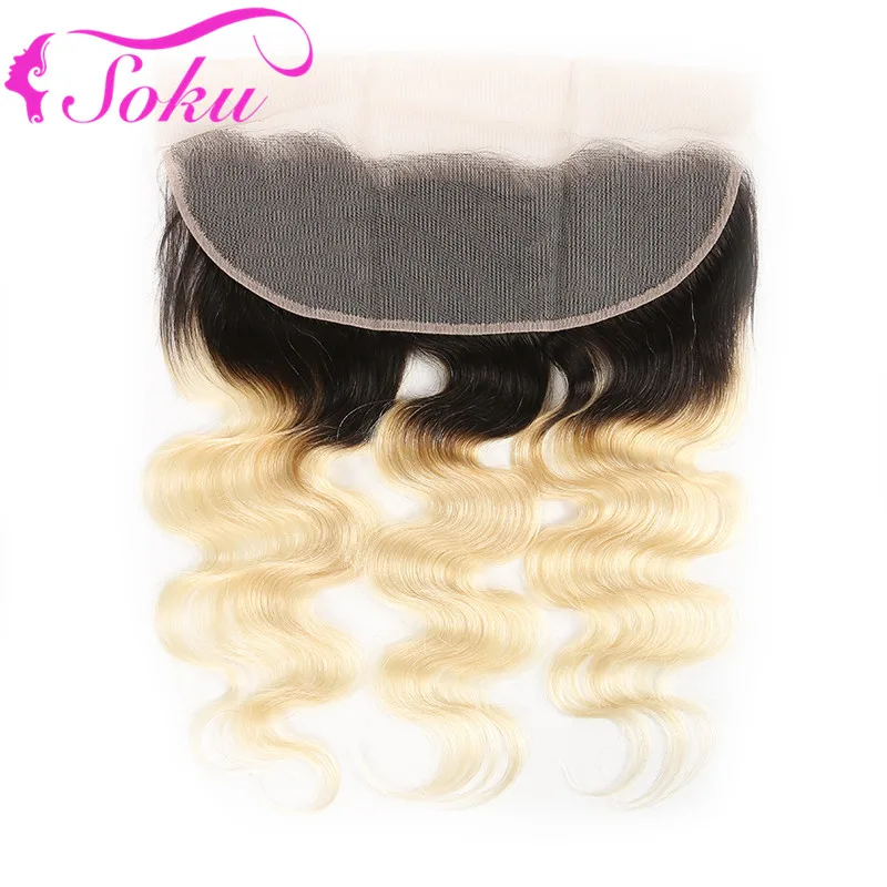 Бразильские волнистые волосы пряди с фронтальной 13x4 SOKU эффектом деграде (переход от темного к блондинка натуральные кудрявые пучки волос пряди с закрытием кружева Волосы Remy Extensoin