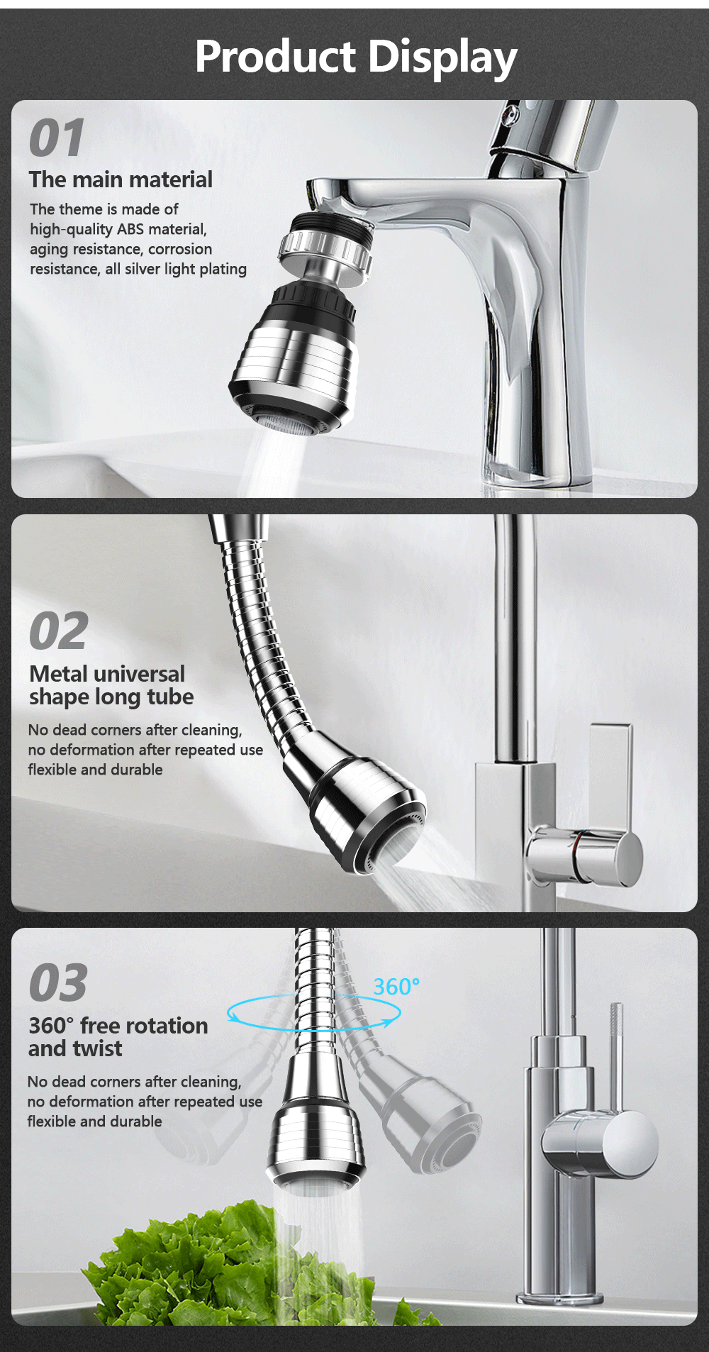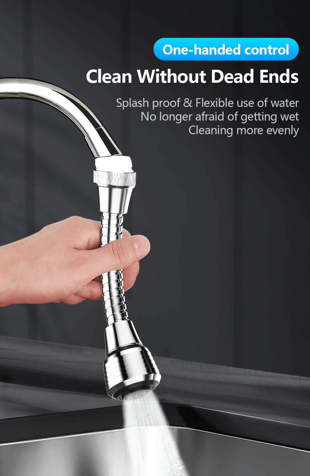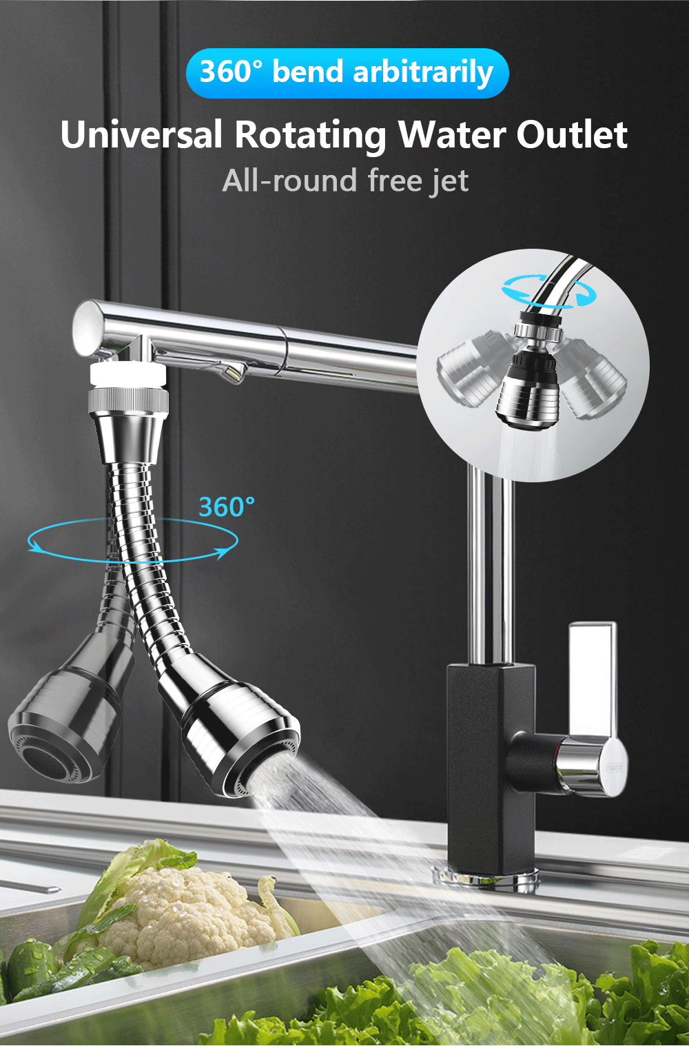 Вращение на 360 °: вода может легко покрывать всю раковину, никогда не беспокойтесь о том, чтобы очистить раковину в холодную зиму.