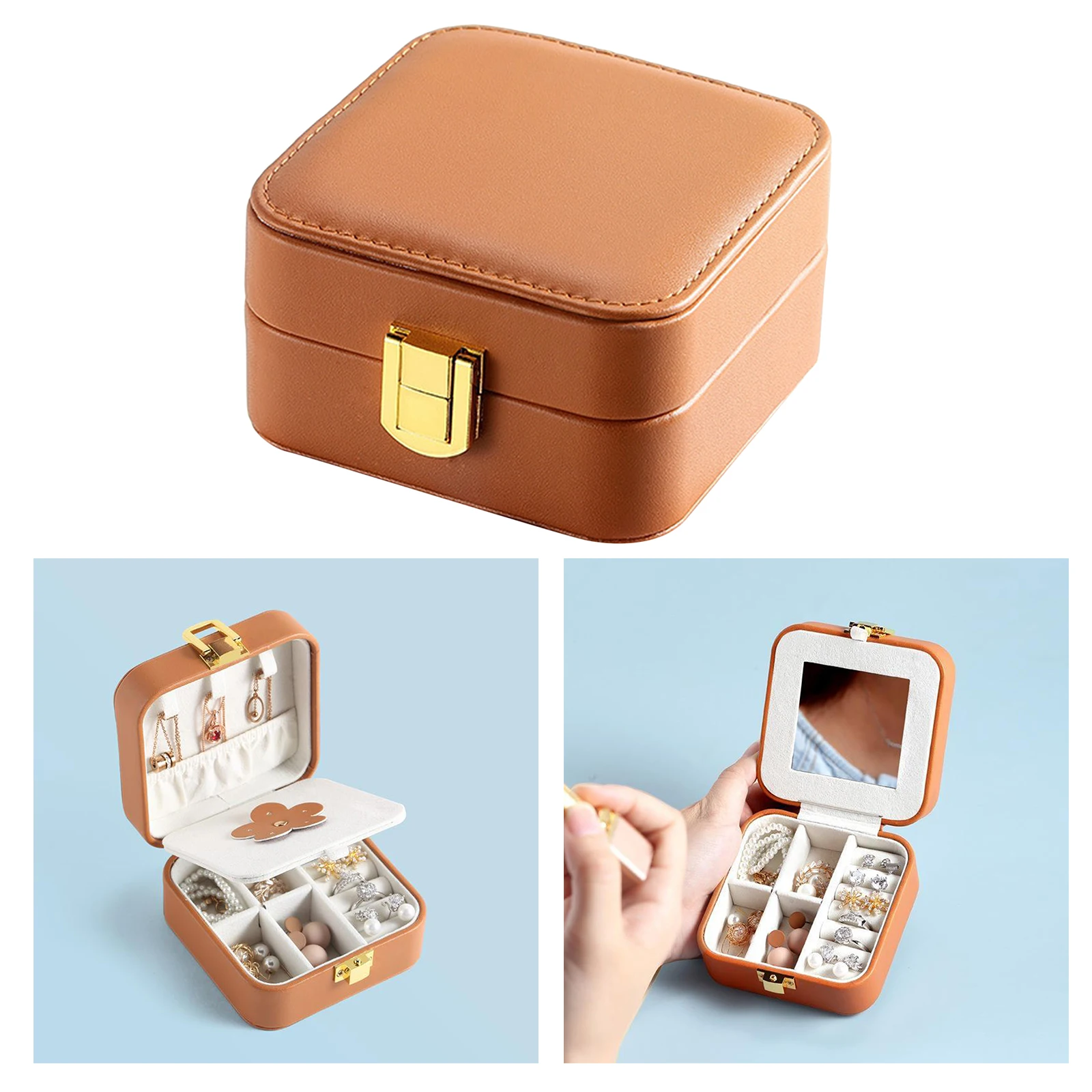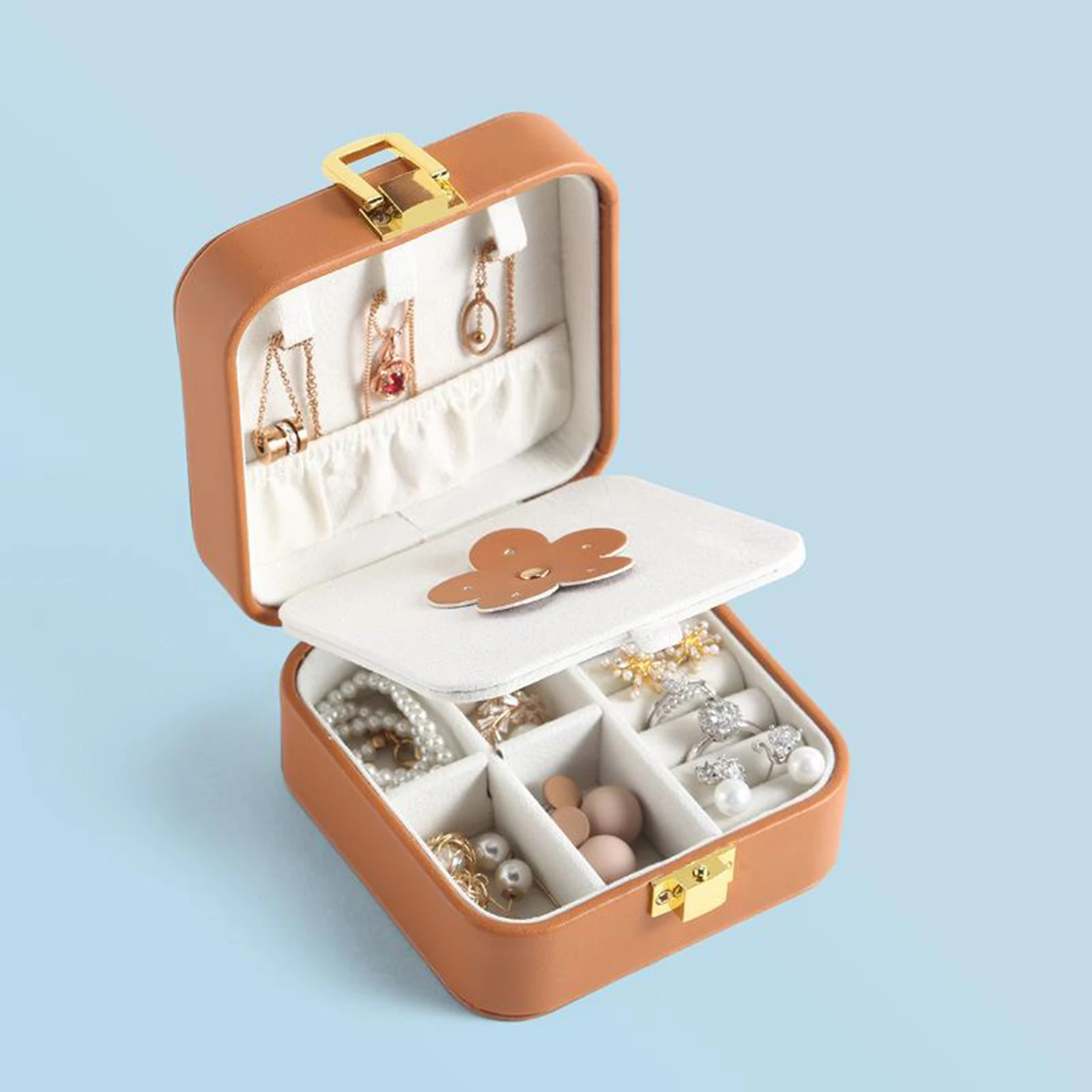 Портативная шкатулка для ювелирных украшений, дорожный двойной простой органайзер для ювелирных украшений из искусственной кожи, колец, сережек, цепочек, чехол для хранения украшений