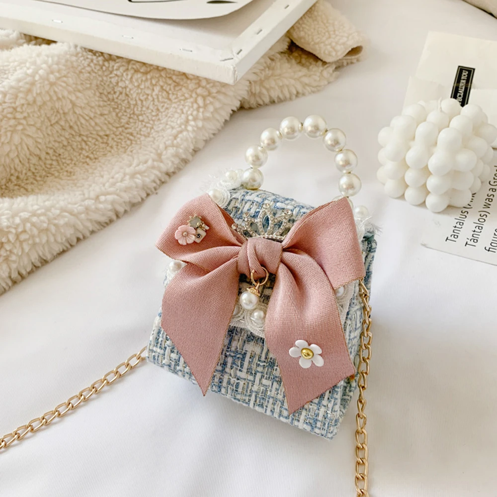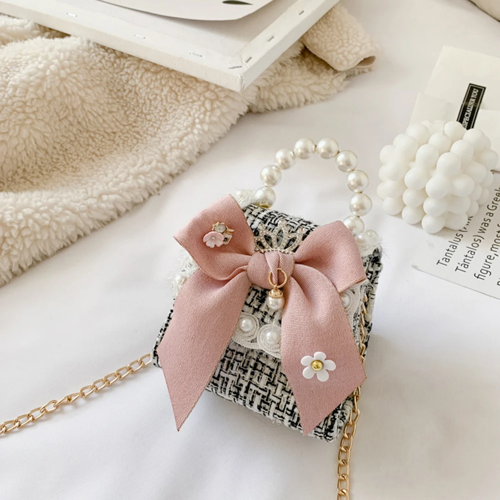 Миниатюрная дамская сумочка-тоут в Корейском стиле, милый мессенджер принцессы с бантом для маленьких девочек, праздвечерние чная Подарочная сумка на плечо