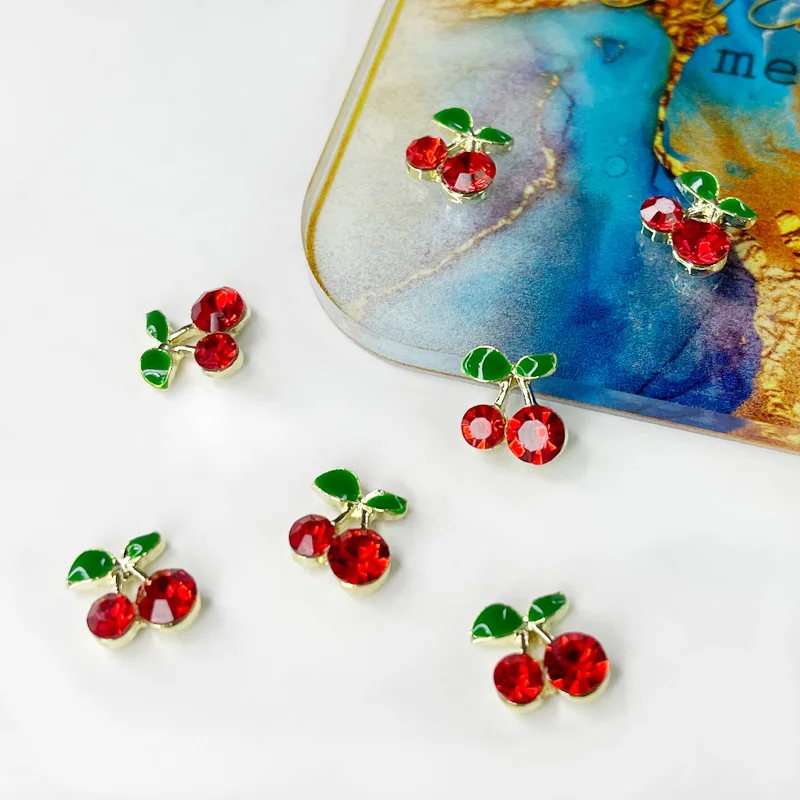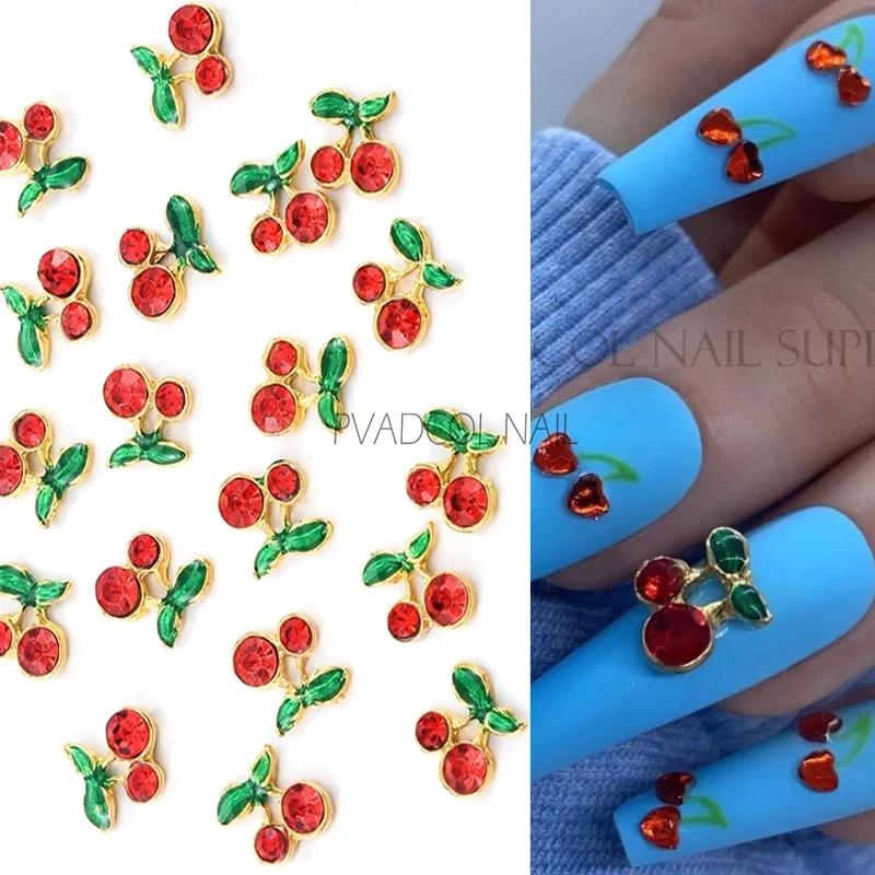 Подвески для ногтей 20 шт., сплав вишни, 3D красные ногти Стразы, хрустальные листья вишни, нажимные кончики, акриловые ювелирные аксессуары