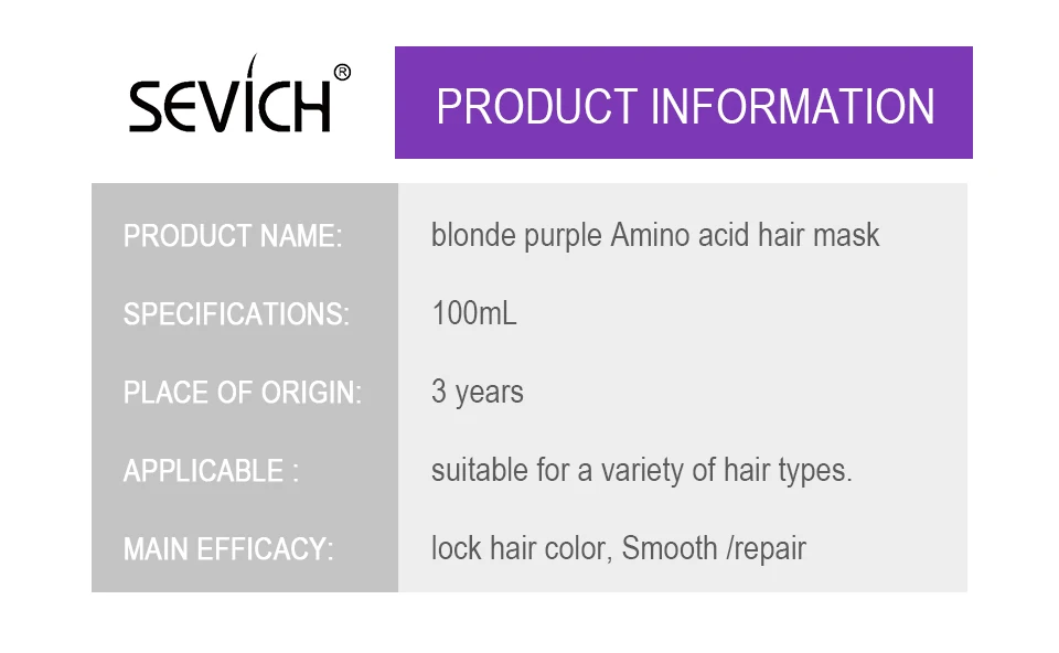 Маска для волос Sevich Amino acid удаляет желтые и Brassy тона шампунь для волос Brassy Tones Repair Frizzy делает волосы мягкими и гладкими