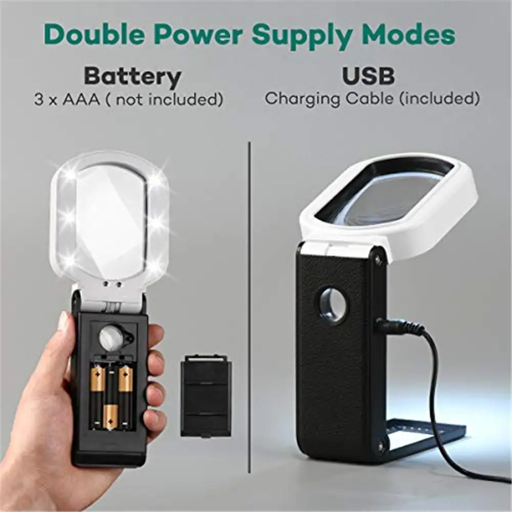Увеличительное стекло 10X, ручная Лупа с светодиодный лампами, небьющееся стекло, линза для ювелирных изделий, газет, книг, очков для чтения