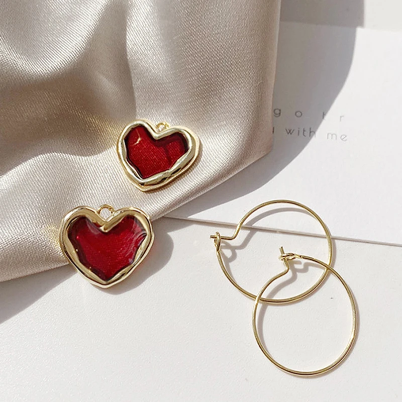 Романтические красные Эмалевые Серьги-кольца в форме сердца, металл...