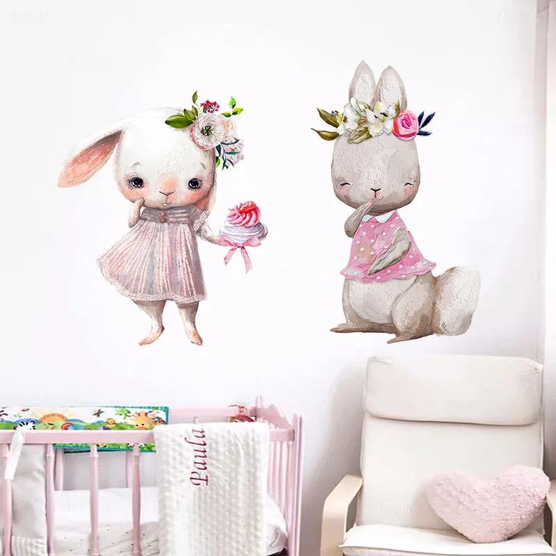 Мультяшные милые наклейки на стену с изображением кролика для детской комнаты, украшение для дома для девочки, мальчика, декор для комнаты, сделай сам, матовые съемные