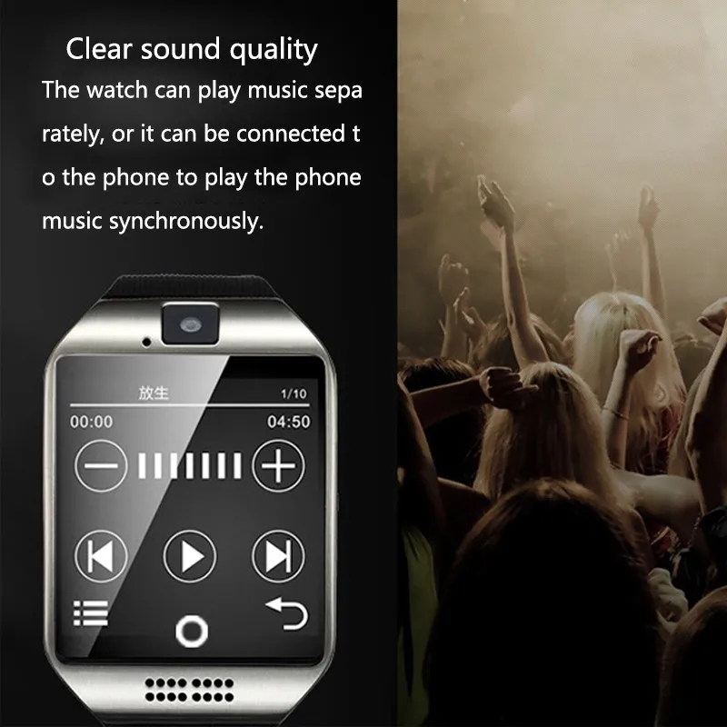 Q18 Bluetooth Смарт-часы 2020 с камерой Facebook Whatsapp Twitter Синхронизация Sms Поддержка sim-карты Tf Смарт-часы Android IOS