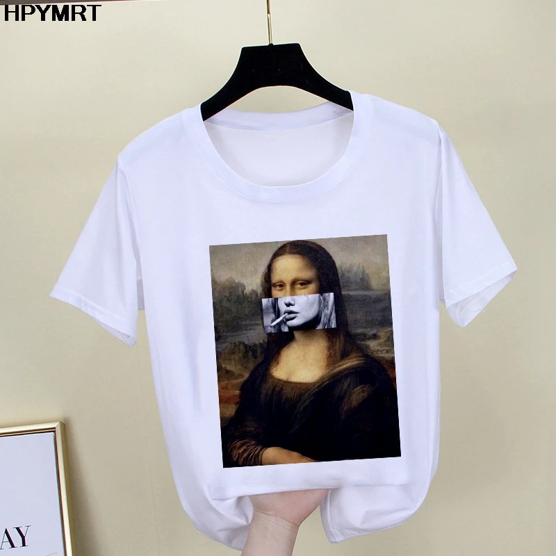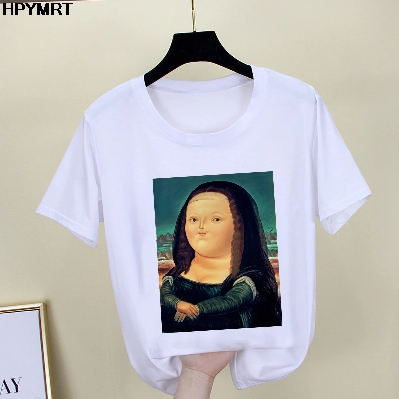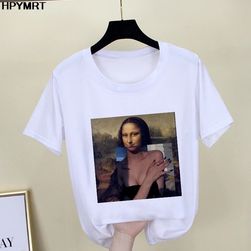2020 новые летние футболки с принтом Моны Лизы, женские Забавные фу...
