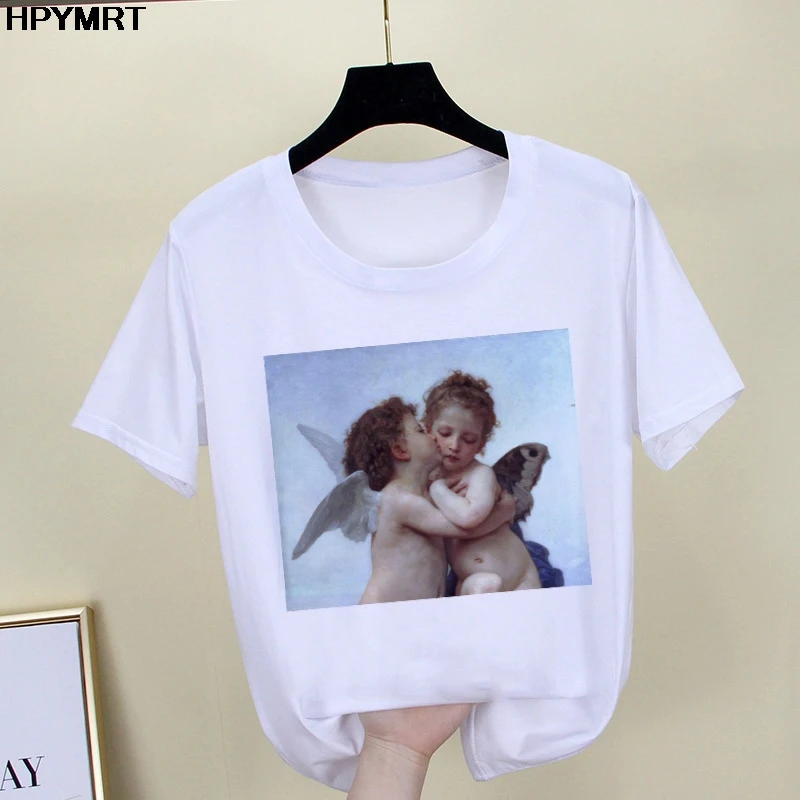 Новые женские футболки с забавным принтом ангела Femm Футболка с забавной графикой, топы с короткими рукавами, футболка, одежда Mulher Camiseta, женская футболка