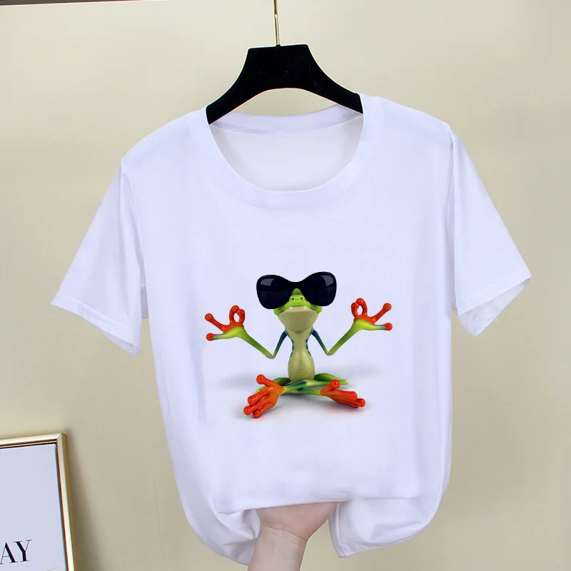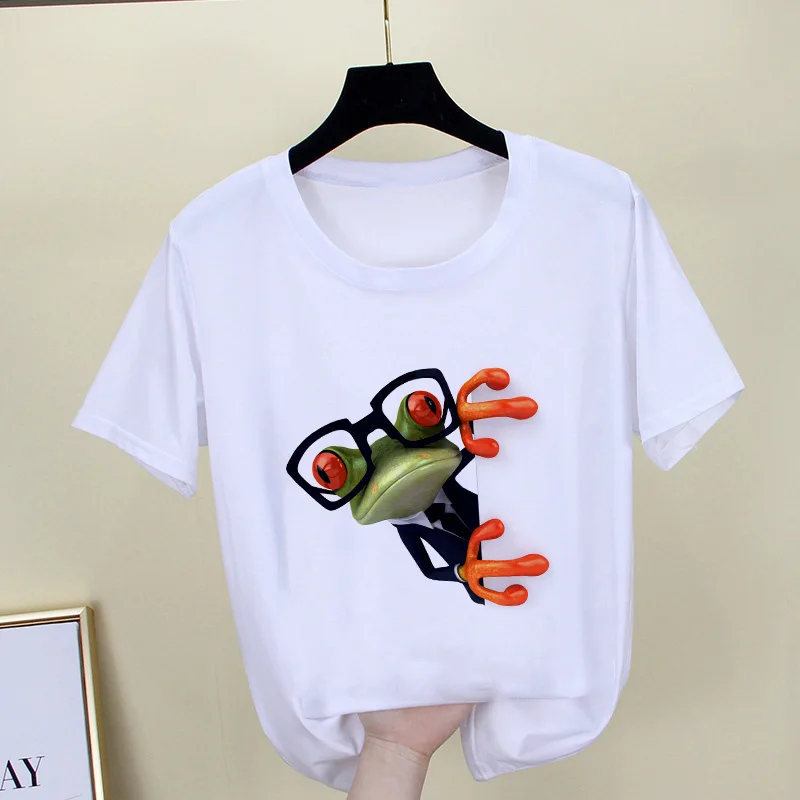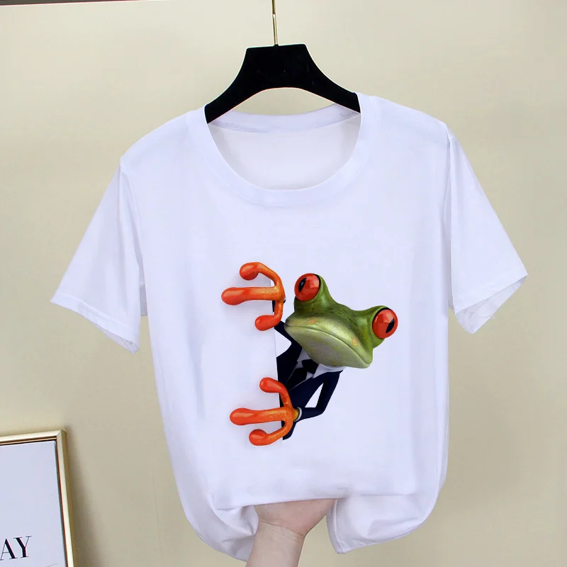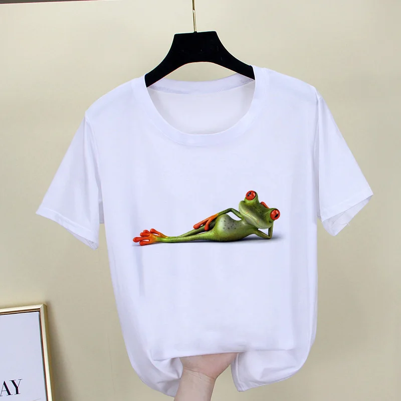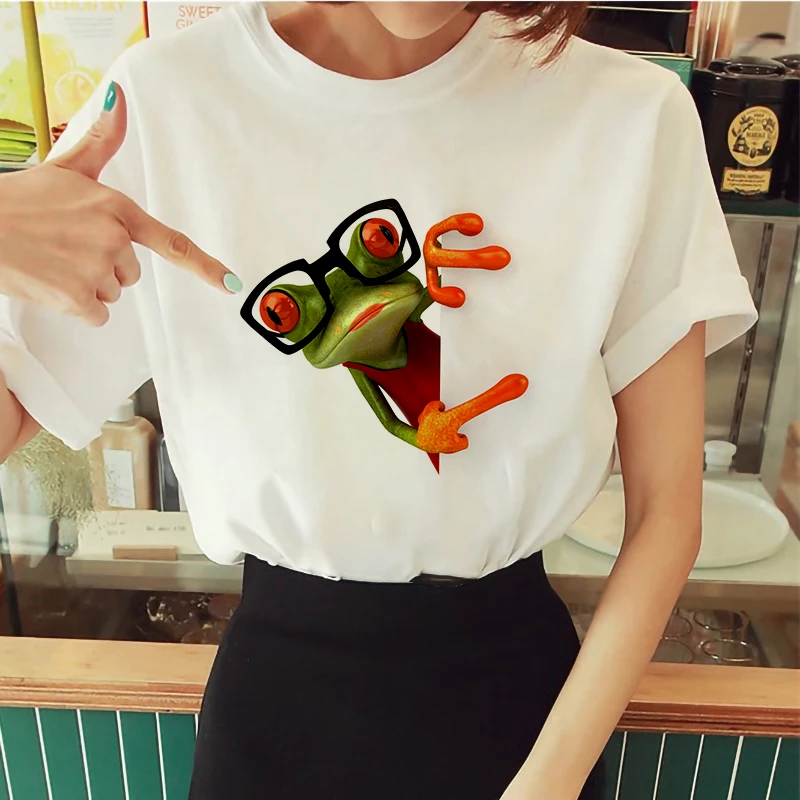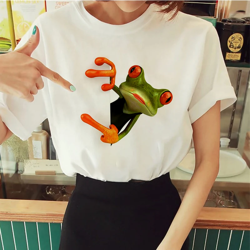 Футболка женская с принтом в виде лягушки, милая забавная рубашка в...