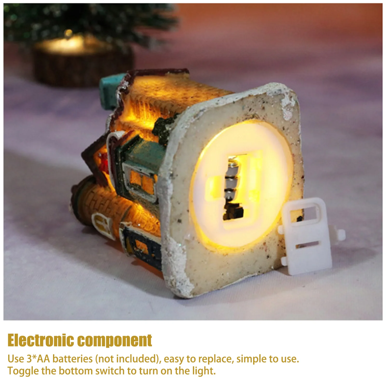 Характеристика:1. Изысканная форма: Изысканная форма в форме маленького дома и окрашенный узор, полная артистизма, очень хорошее украшение.2. Материал защиты окружающей среды: полимерный материал, защита окружающей среды, нетоксичный, прочный и не выцветает.3. Высококачественный светильник: с источником светодиодный светильник, теплый белый и мягкий светильник, высокая яркость, энергосбережение, безопасно для использования.4. Режим питания: Используйте 3 * батарейки АА (не входят в комплект), легко заменить, просто использовать. Переключите нижний переключатель, чтобы включить светильник.5. Применение: подходит для украшения праздника, ночной Светильник для детской комнаты, подарки на праздник и день рождения.