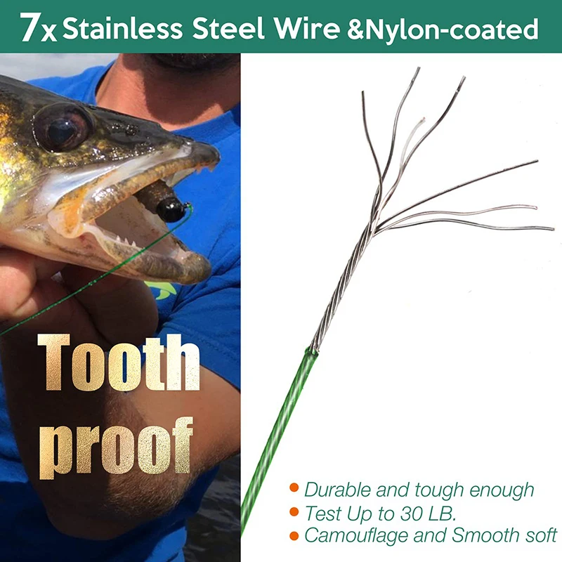 Прочный и достаточно прочный для рыб с острыми зубьями; Нанесите на различные приманки или приманки; Подходит как для пресной, так и для соленой воды.