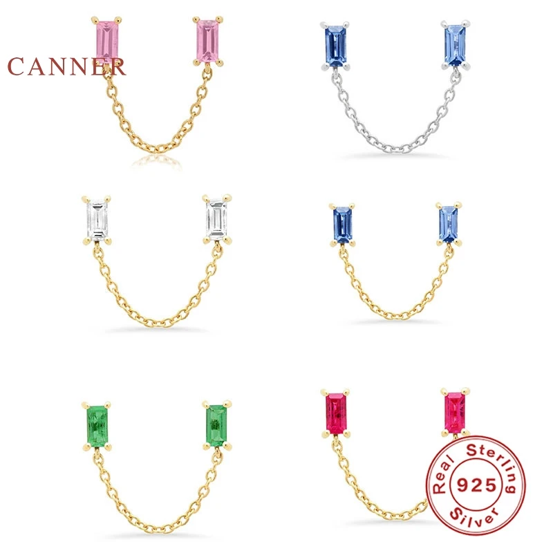 CANNER 1 шт. геометрические креативные простые серьги-цепочки для женщин S925 Стерлинговый Серебряный пирсинг серьги-гвоздики ювелирные изделия