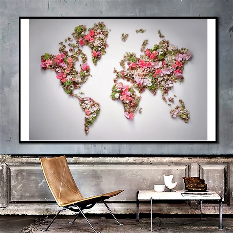 Нетканая карта мира 150x100 см, Цветочный стиль, картина, Карта мира, Настенная Наклейка для дома, школы, образование, Декор