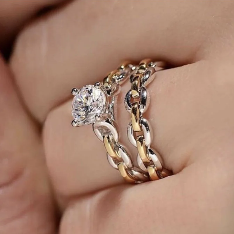 Элегантное и нежное женское кольцо, женское двухцветное кольцо с ка...