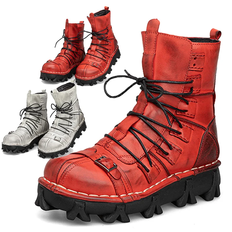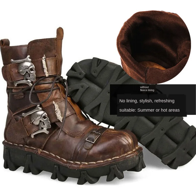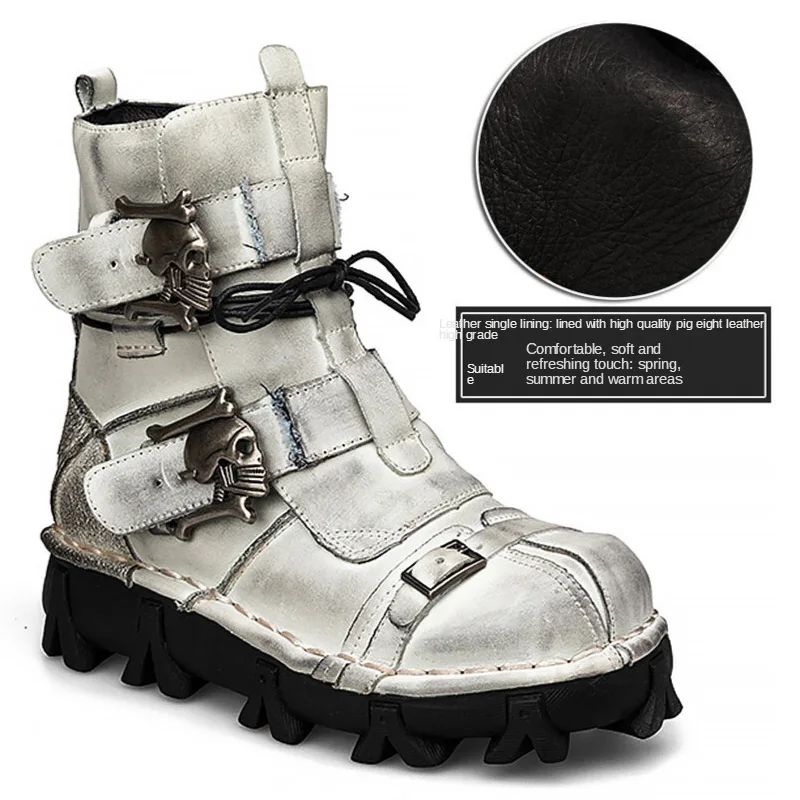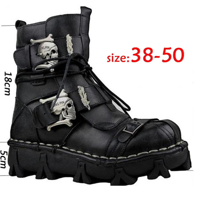 Ботинки мужские в байкерском стиле, ботинки в стиле милитари из натуральной воловьей кожи, готические панковские ботинки с черепами, тактические зимние, 50