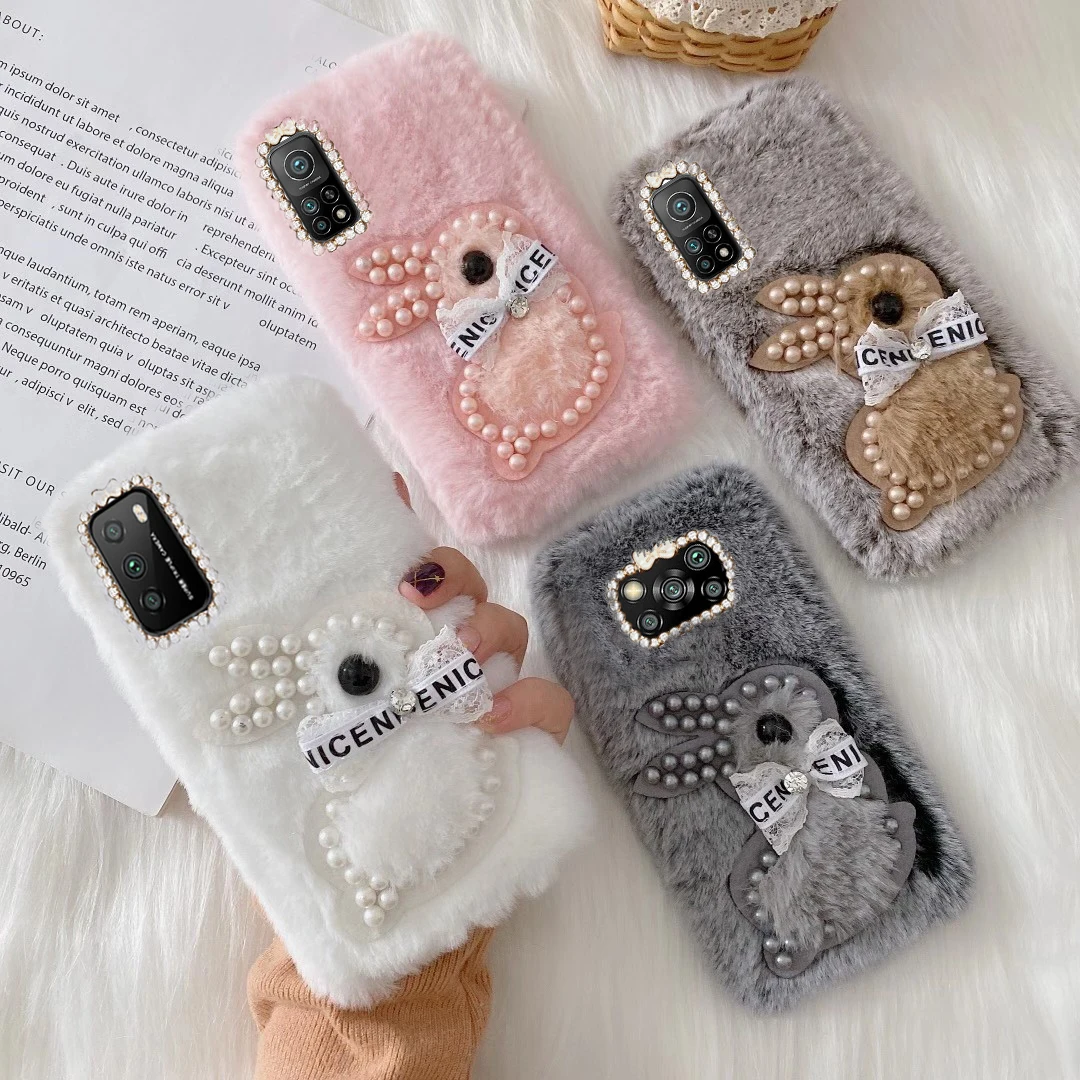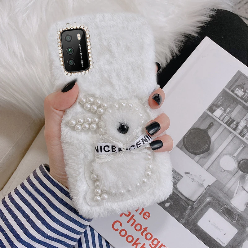 Чехол для Xiaomi Poco M3 Mi 8 9 9T 9SE 10T A1 A2 A3 Lite 5G Pocophone F1 F2 Pro X3 NFC с мультяшками для задней панели чехол с Плюшевым Мехом Алмазный чехол для iPhone X