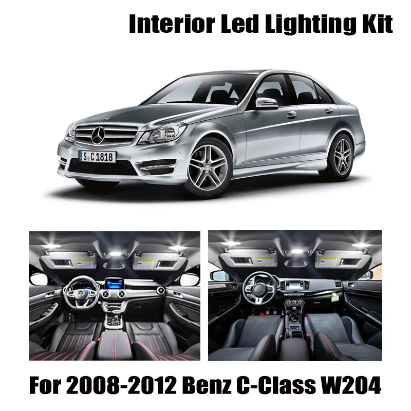 15 лампочек, без ошибок, светодиодный потолочный светильник с внутренней картой, комплект ламп номерного знака для Mercedes Benz C-Class W204 2008-2012