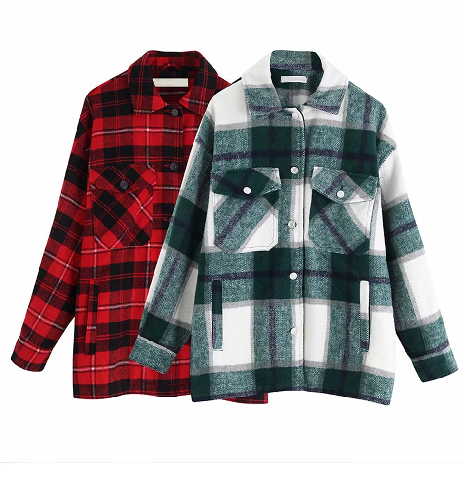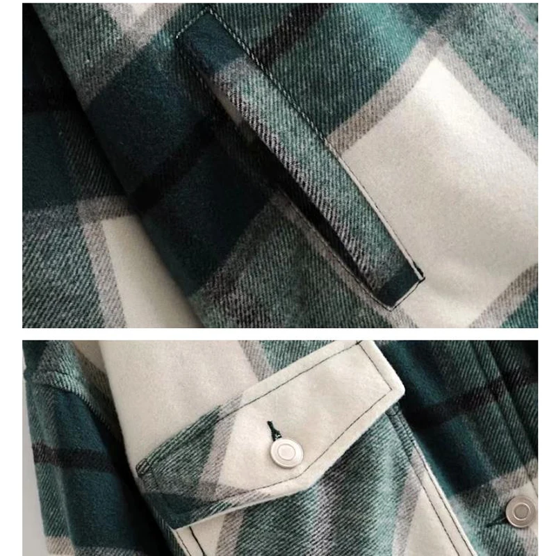 Куртка женская в клетку, винтажное длинное шерстяное пальто с карманами, Повседневная Свободная верхняя одежда, шикарный клетчатый Топ, Осень-зима
