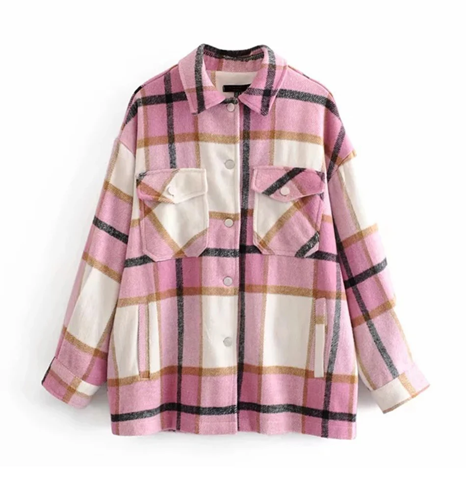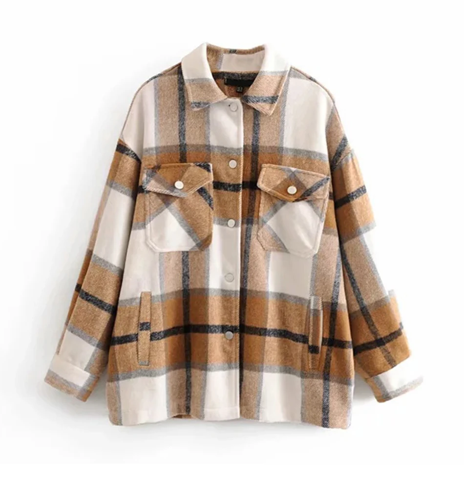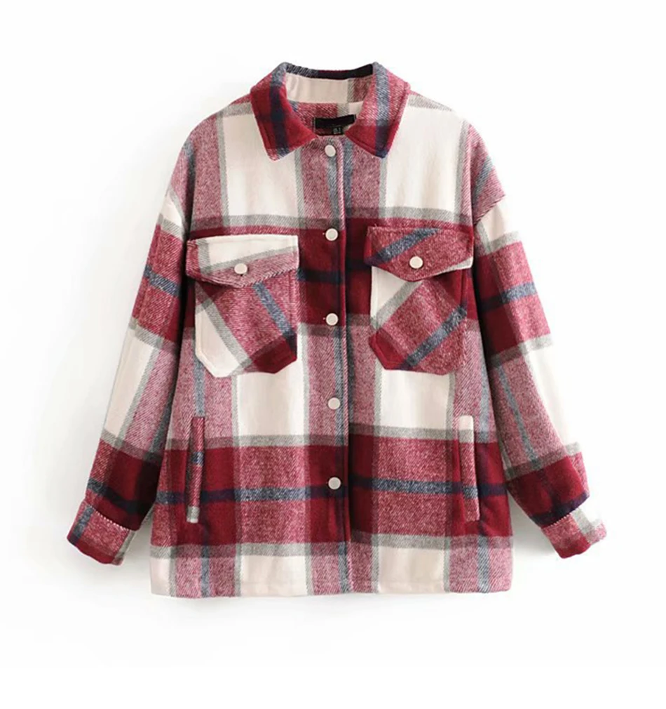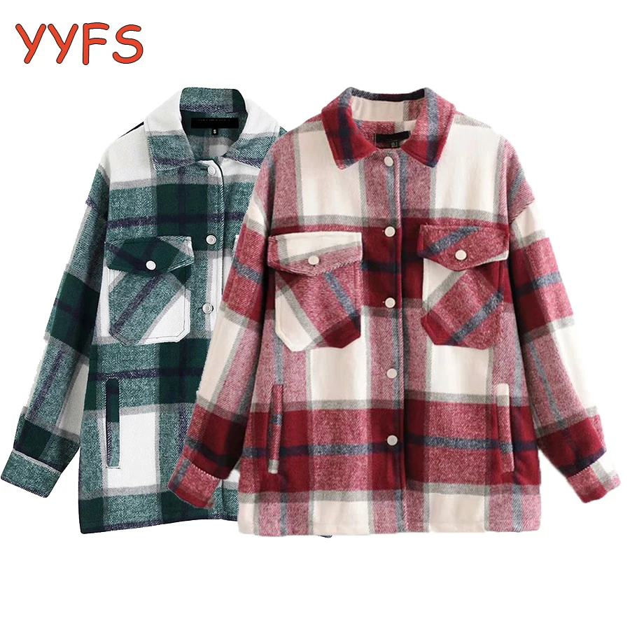 YYFS Женская клетчатая куртка, пальто, винтажное длинное шерстяное пальто с карманами, осенне-зимнее повседневное Свободное пальто, женская верхняя одежда, шикарные топы в клетку