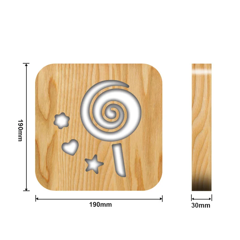 Название: Творческий 3D деревянный ночной Светильник Материал: сосновая древесина Размер изделия: 190x190x30мм Цвет изделия: теплый белый светильник Режим переключения: кнопка Технические характеристики изделия: 5V 1A 2,5 W Способ питания: USB кабель (входит в комплект) Вес продукта: 0,55 кг Одна посылка: 24x20x3.8 см