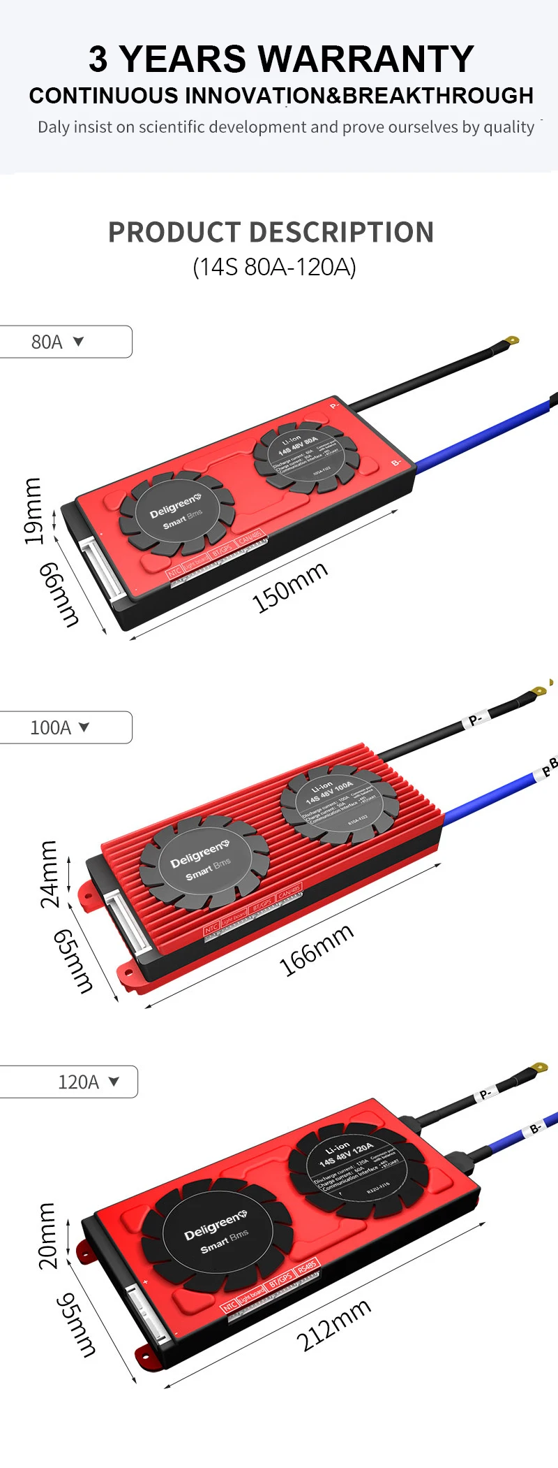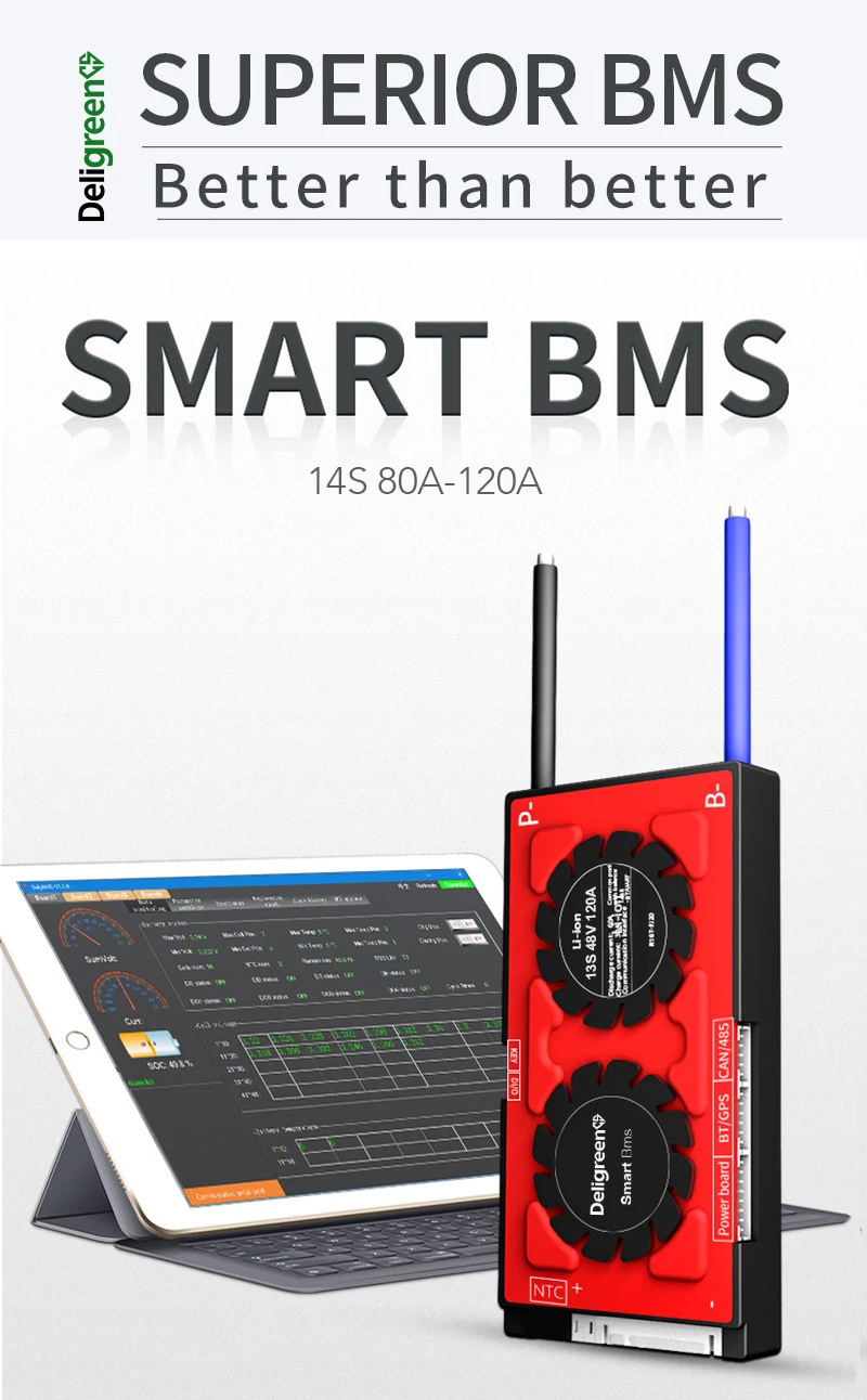 Умный BMS 14S BMS 80A 100A 120A с Bluetooth UART 485 CAN для 58,8 V литий-ионного аккумулятора UART CAN для EV Ebike Power storage