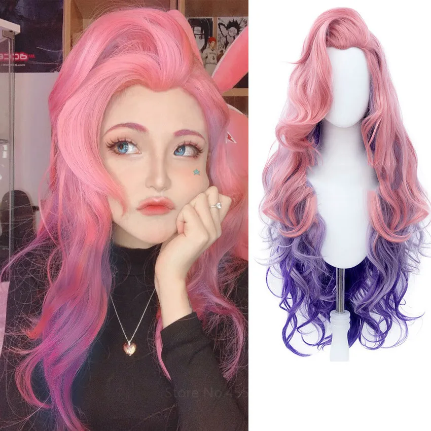 Игровой Серафин розовый фиолетовый градиент Волнистые Длинные Косплей термостойкие синтетические волосы реквизиты карнавальные