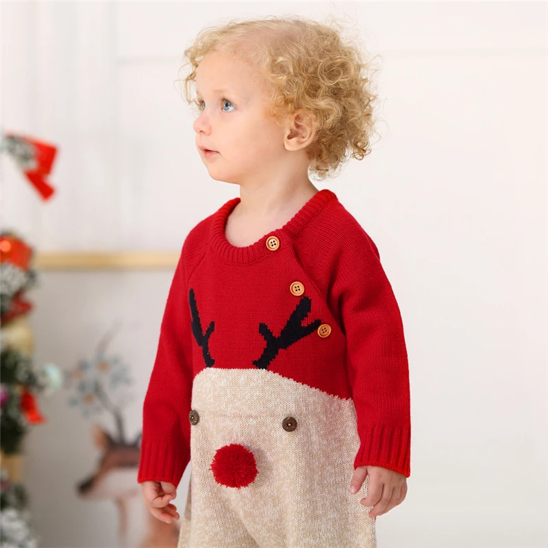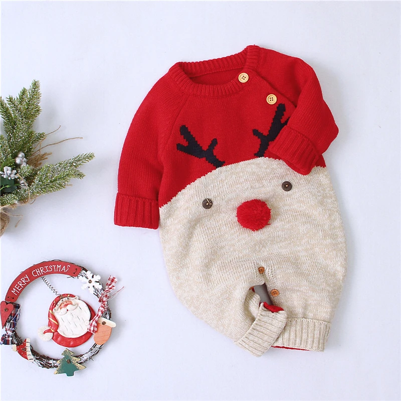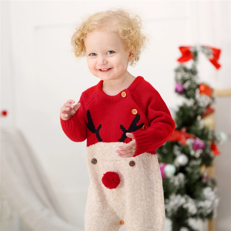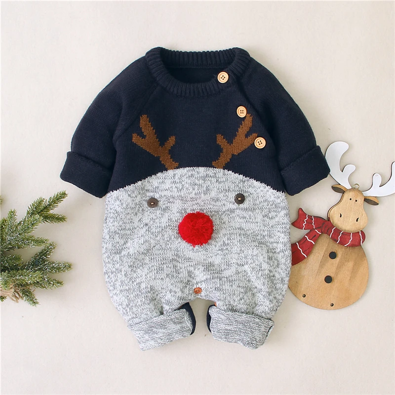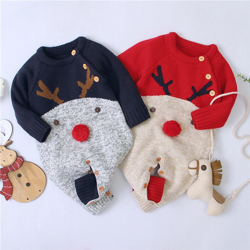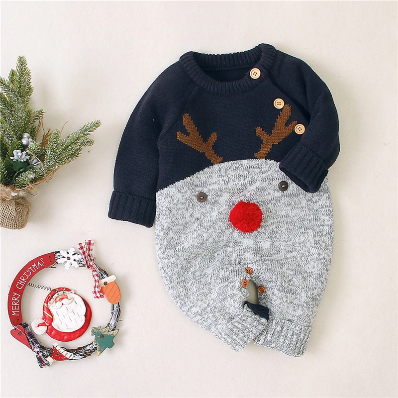 Рождественский Вязаный комбинезон для новорожденных девочек и мальчиков, комбинезон с оленем, теплые наряды, детские комбинезоны на возраст 0-18 месяцев