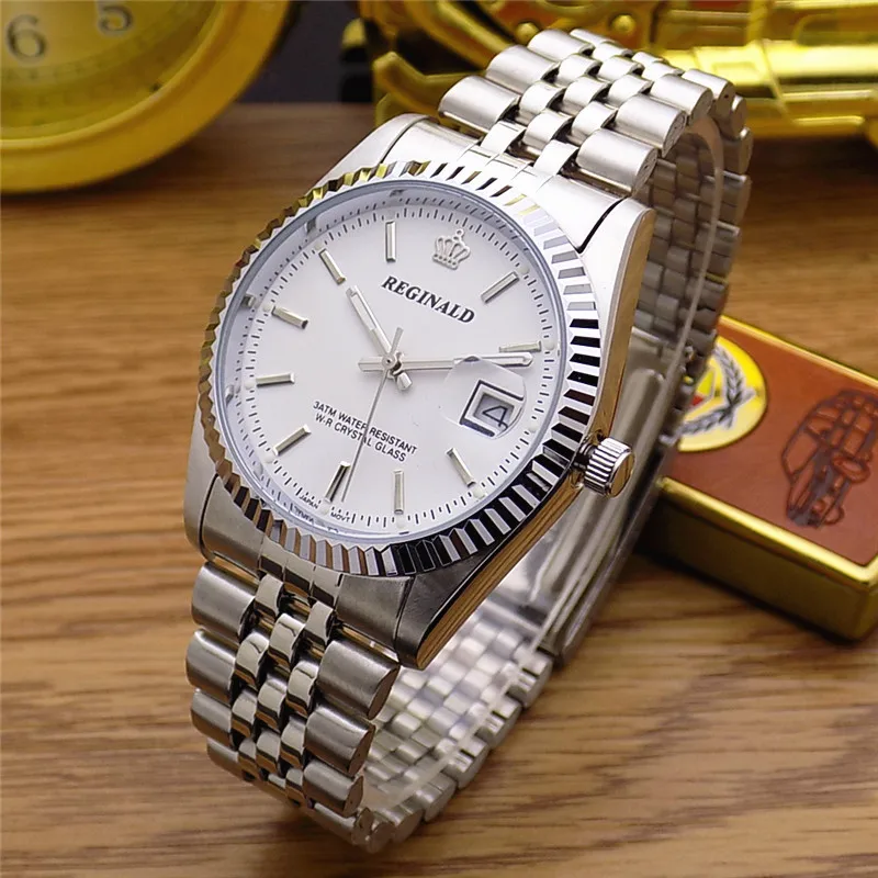 Роскошные Брендовые Часы от Гонконга REGINALD, женские и мужские часы, серебряные часы из нержавеющей стали, водонепроницаемые кварцевые наручные часы