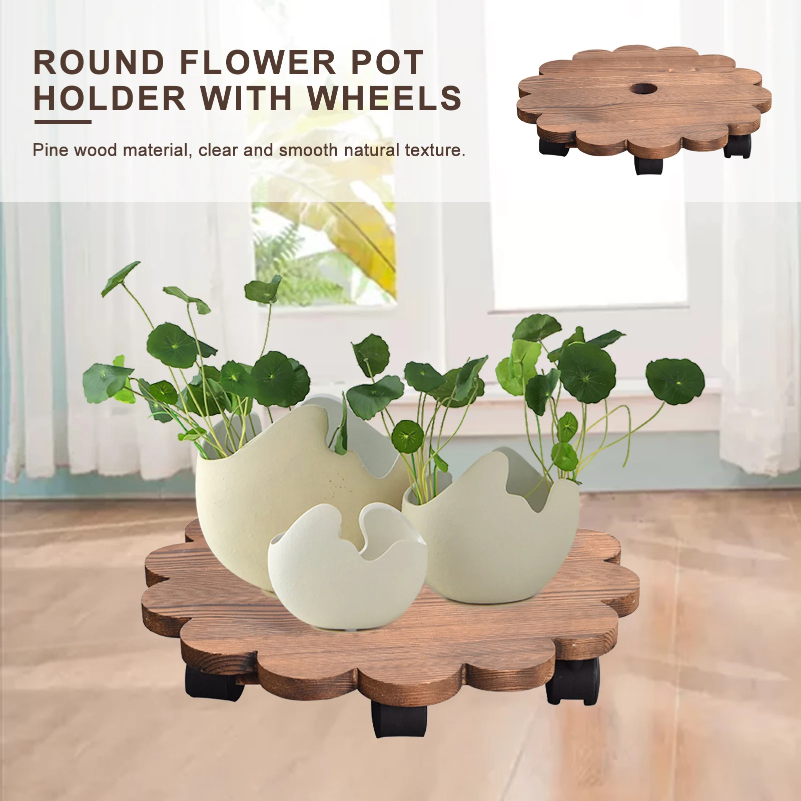 Деревянный круглый цветочный горшок, поднос на колесах, тяжелая кастрюля для цветов, перемещающая тележка, держатель, садовые инструменты, 2025 см