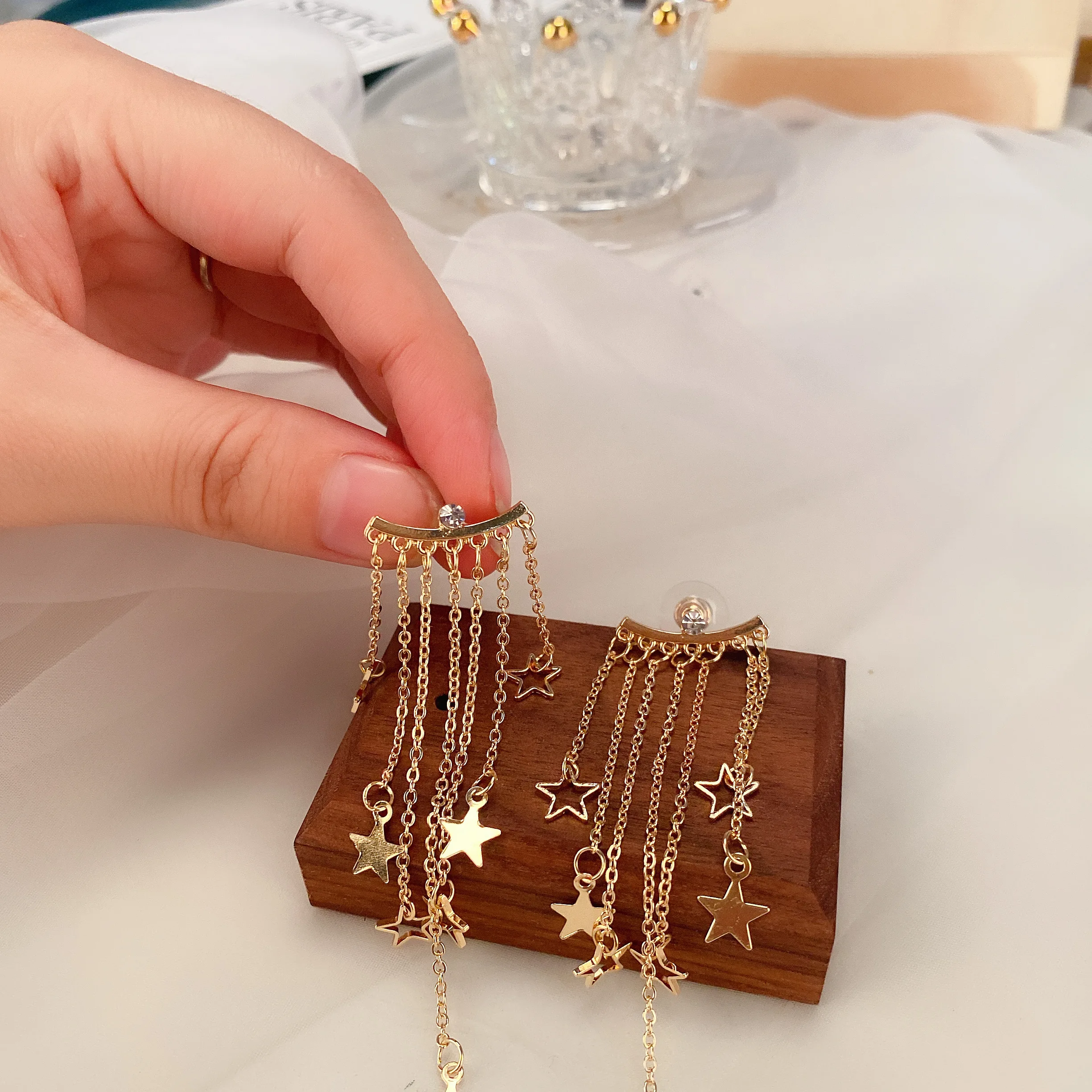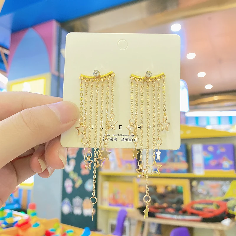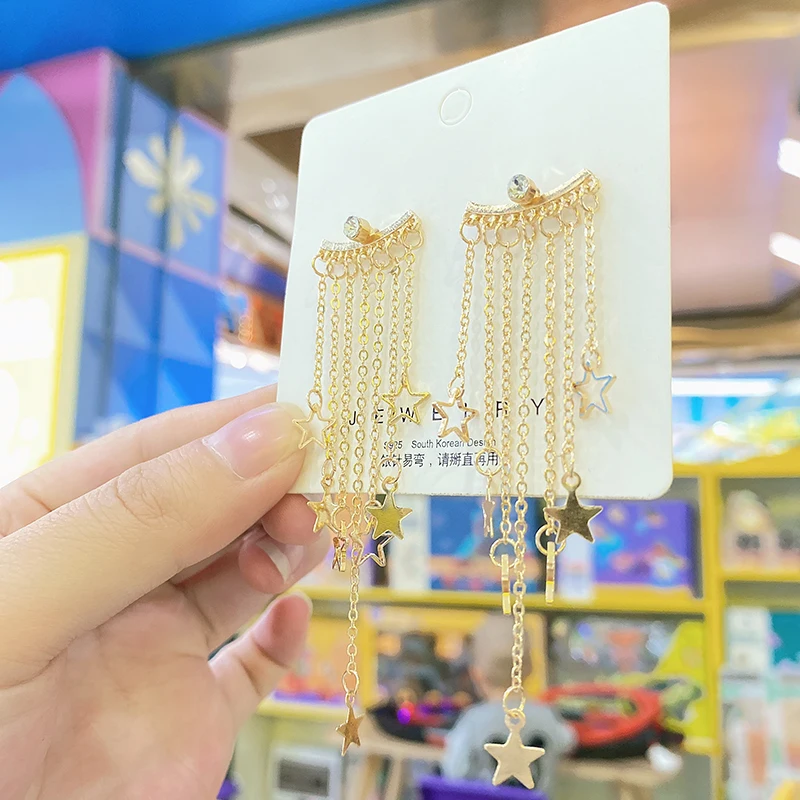 Крупные длинные серьги-кисточки с подвеской в виде звезды, изысканные металлические серьги в европейском и американском стиле, новые женские ювелирные изделия, ушное кольцо, трендовые серьги
