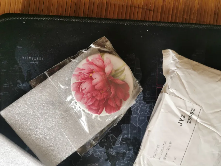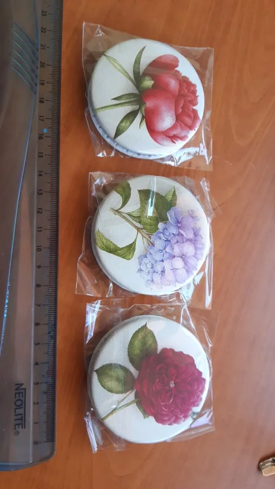 Заказывала зеркало 11.11, получила на почте в Самаре 6.12. Пришло зеркало целое. Размер конечно гораздо меньше, чем предполагалось. Рисунок красивый, не бледный, с обратной стороны белый . Мило выглядит. Запаха нет. Одно зеркало обычное, другое с увеличением. Фиксатора закрытия в карманном зеркале нет, как например в сумочном, видимо со временем будет открываться, когда крепление ослабнет. С продавцом не общалась, товар отправили быстро.
