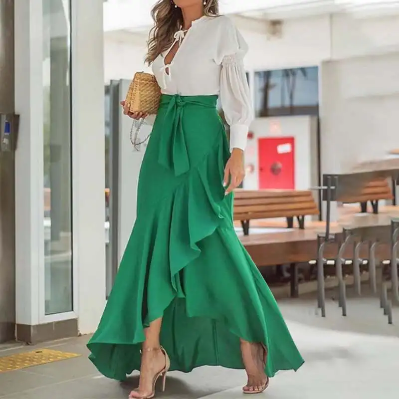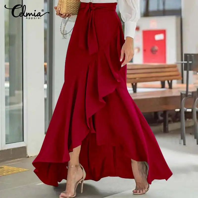 Celmia 2022 модные асимметричные юбки с оборками, Женская юбка-макси с высокой талией и поясом, длинная юбка для вечеринки, повседневные свободные юбки