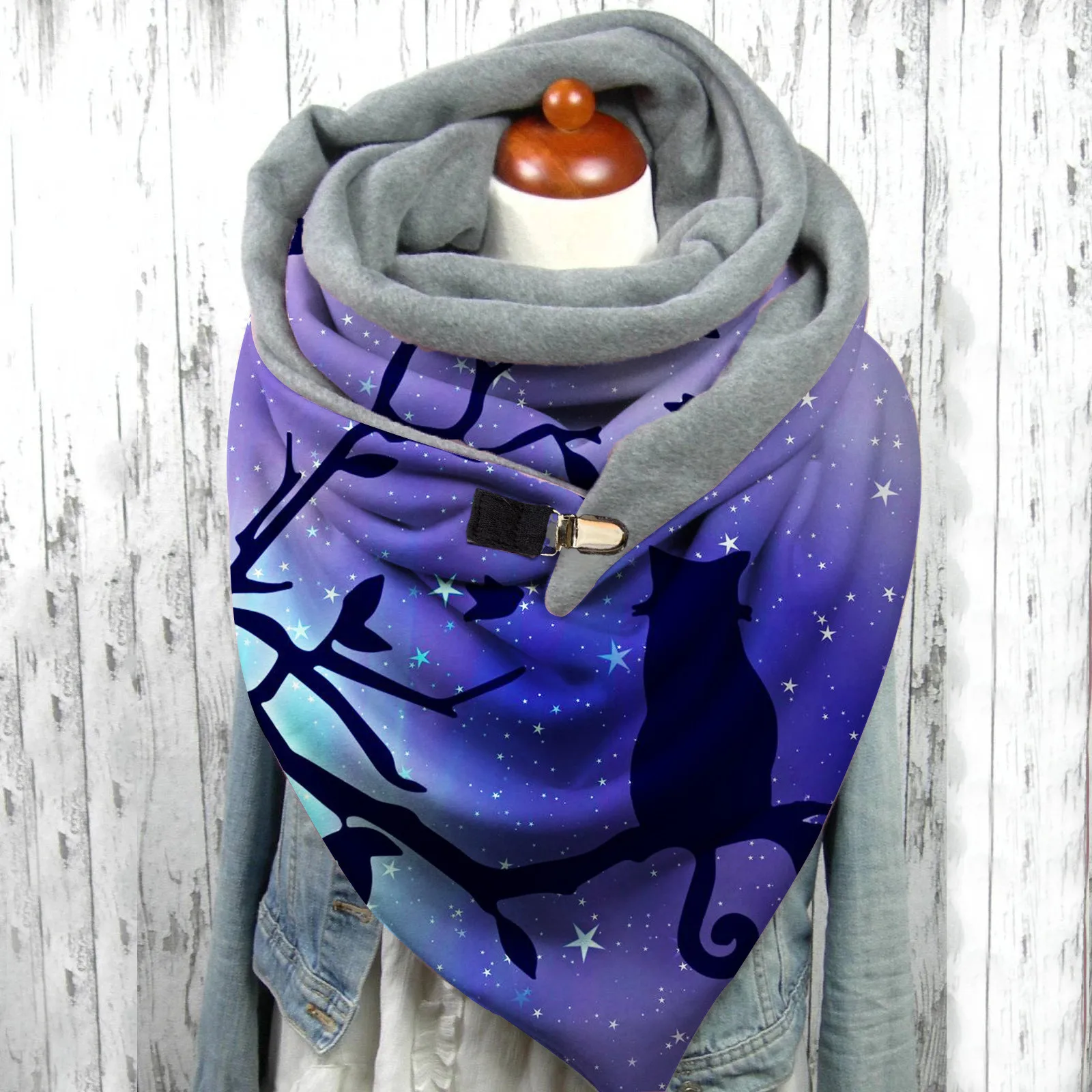 Женский зимний кашемировый шарф 2020, шарфы с принтом кота, мягкие шарфы на пуговицах, повседневные теплые шарфы, шали, женский платок, толстое одеяло