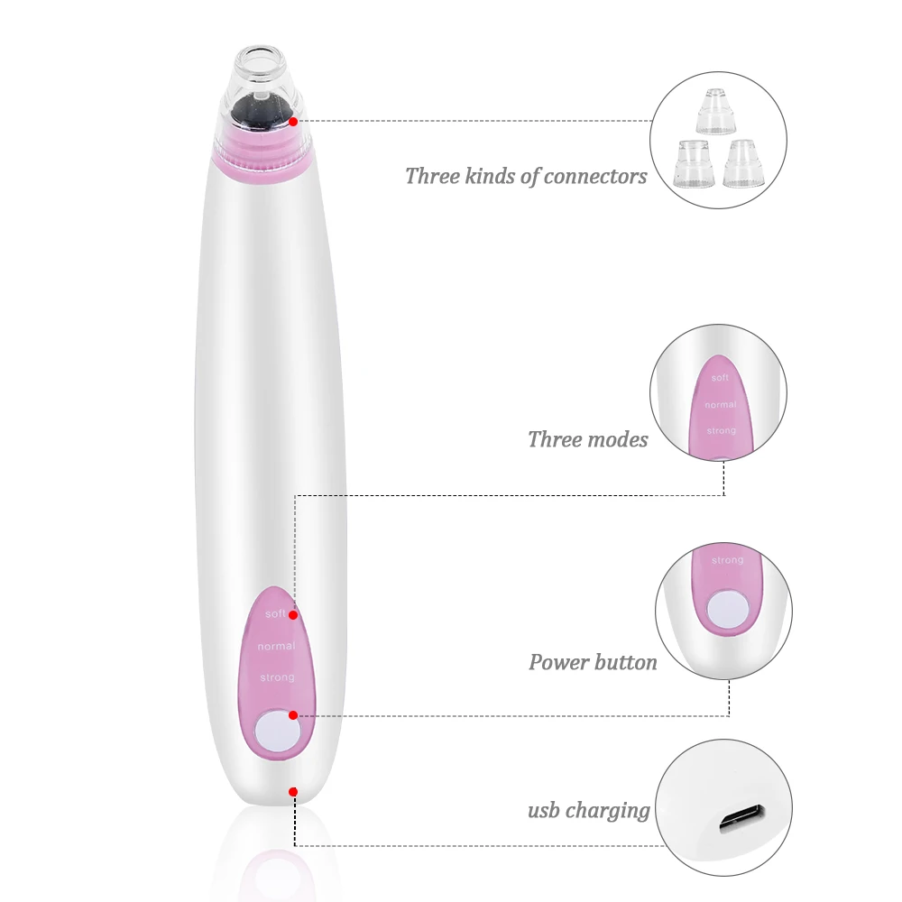 Электрическая всасывающая головка для угрей, подходит для всех типов кожи: 3 многофункциональных зонда могут не только удалять черные головки из разных областей кожи, но и уменьшать морщины, твердую, гладкую и чистую кожу, делает его профессиональным и эффективным поровым пылесосом