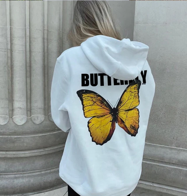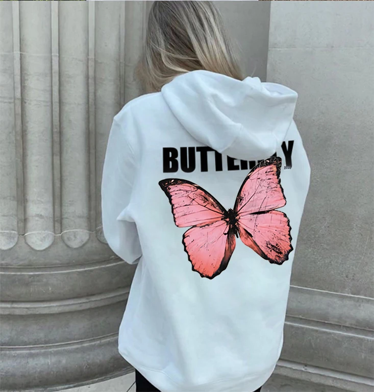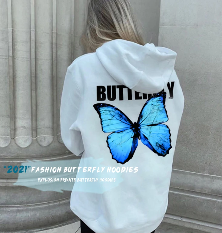 2021 Модные женские толстовки в стиле хип-хоп, взрывная толстовка с бабочками, осенняя белая уличная одежда с длинным рукавом, толстовки в стиле Харадзюку
