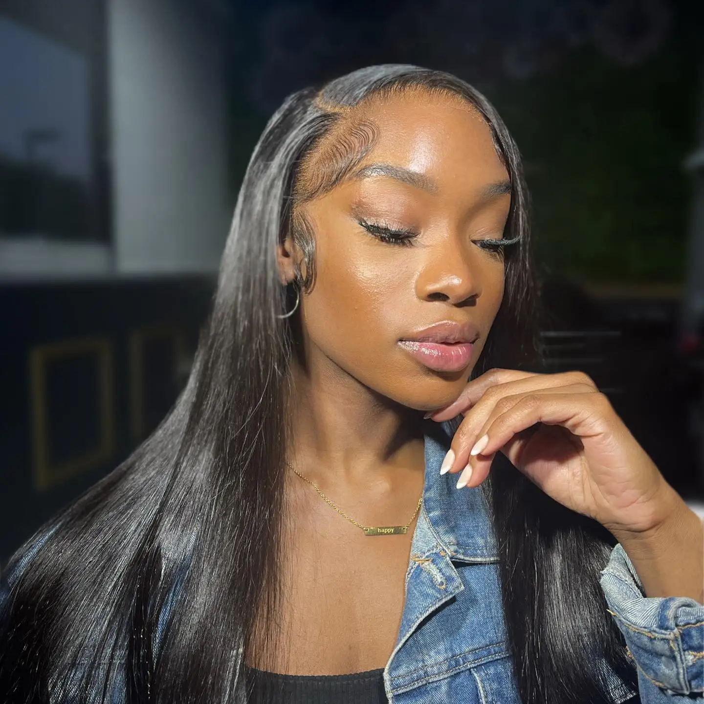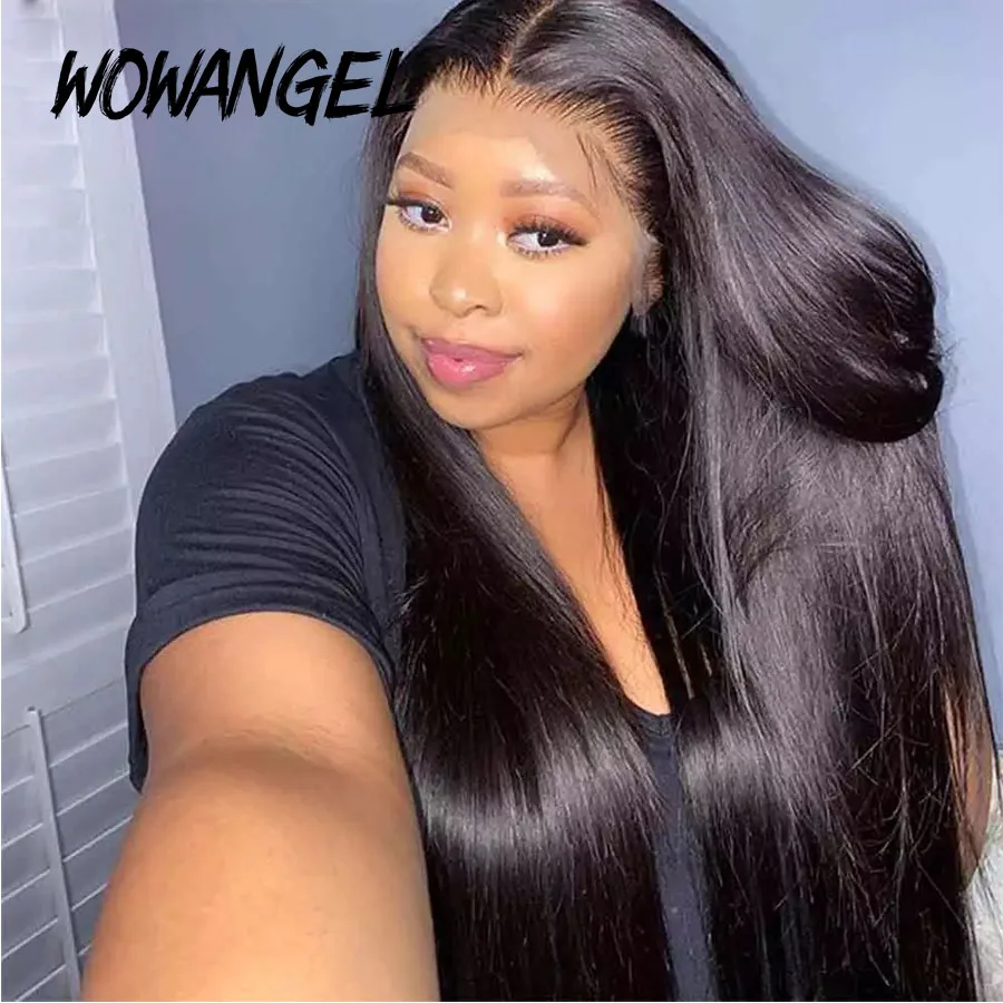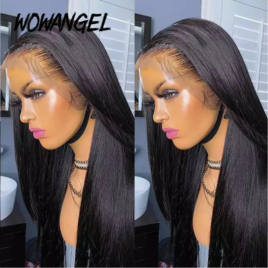 Парик прямой из натуральных человеческих волос с прозрачной кружевной передней частью, 13 х6 дюймов