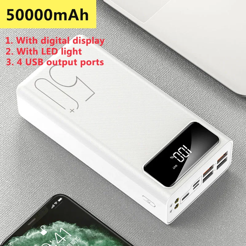 Внешний аккумулятор 50000 мАч, портативное зарядное устройство со светодиодной подсветкой, внешний аккумулятор 50000 мАч для iPhone, Xiaomi, Samsung, Huawei