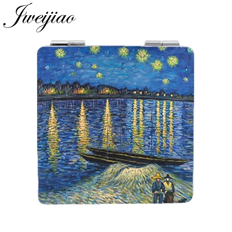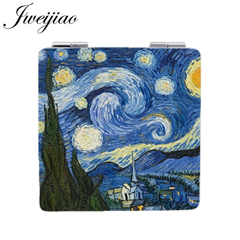 Youhaken Ван Гог Картина маслом Подсолнух макияж зеркала Знаменитые Картины звездное небо квадратный карманное зеркало в кожаной оправе для женщин ZZ74