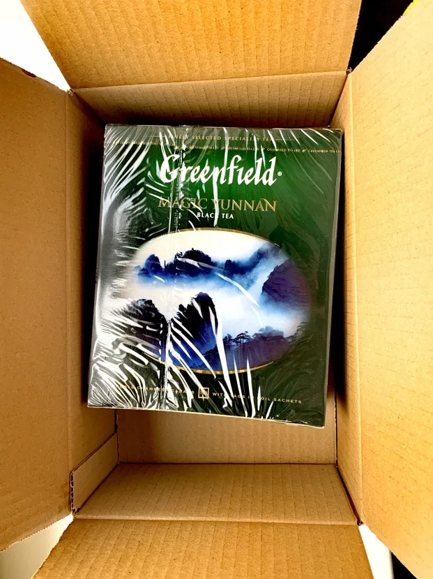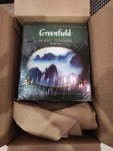 Очень классный чай, обожаю его. Дошёл за 1 день, коробка в абсолютной целостности. Запечатан и упакован.