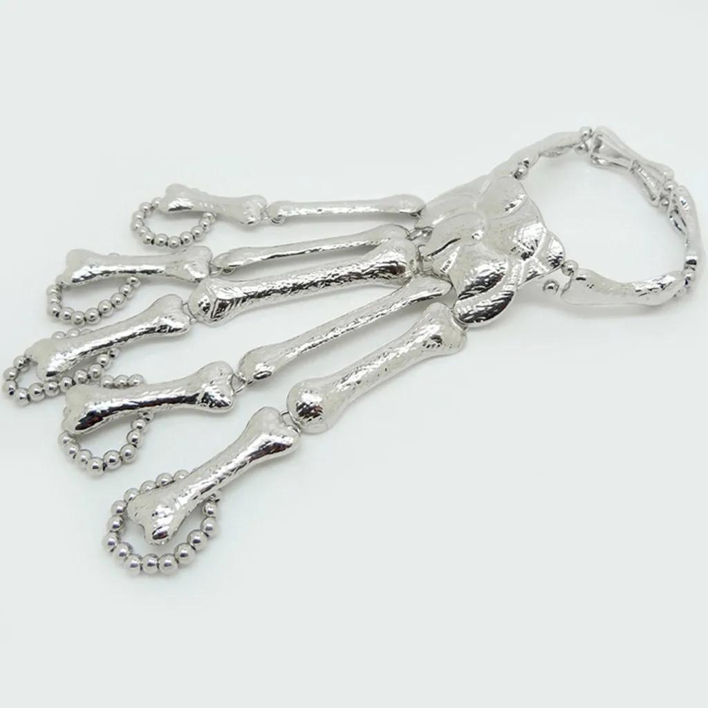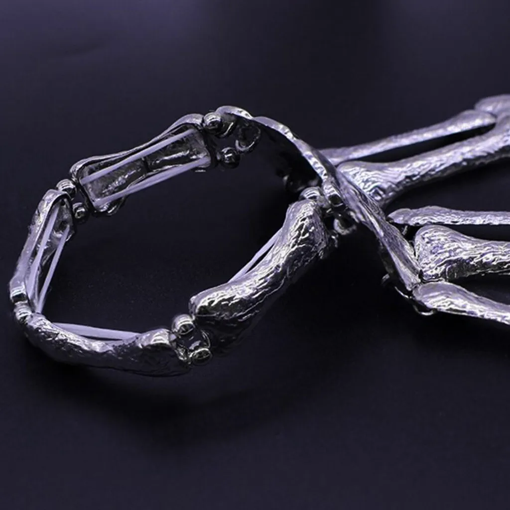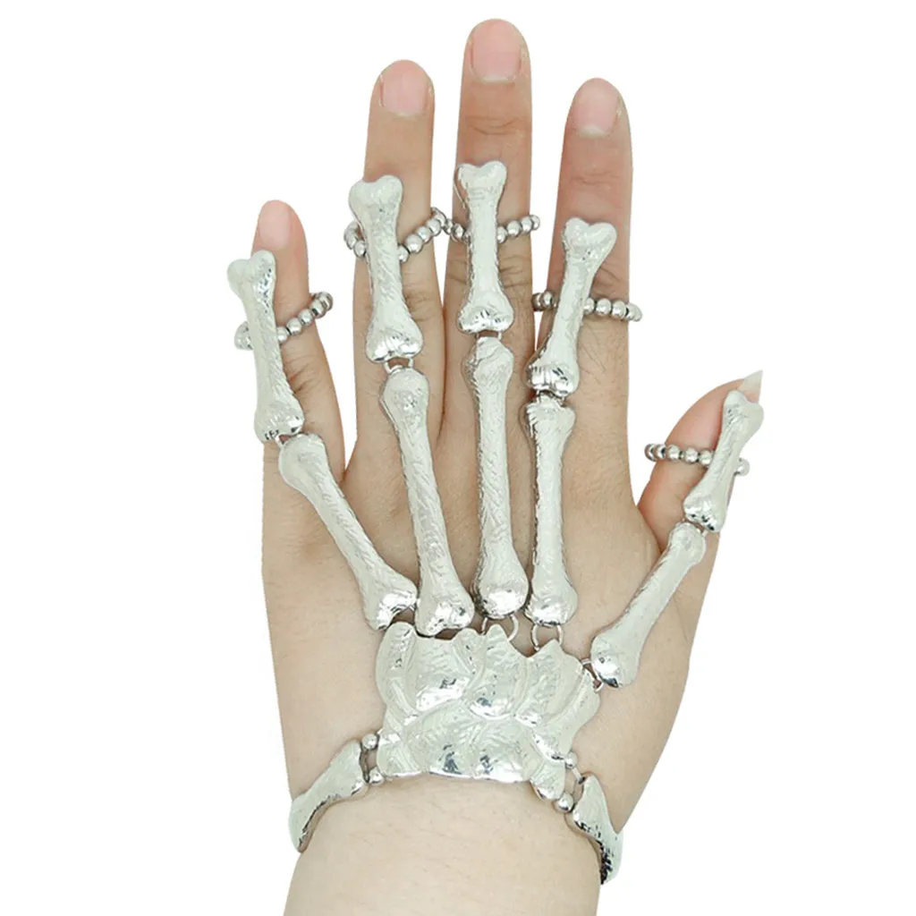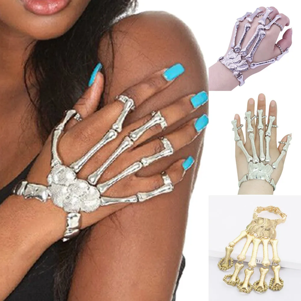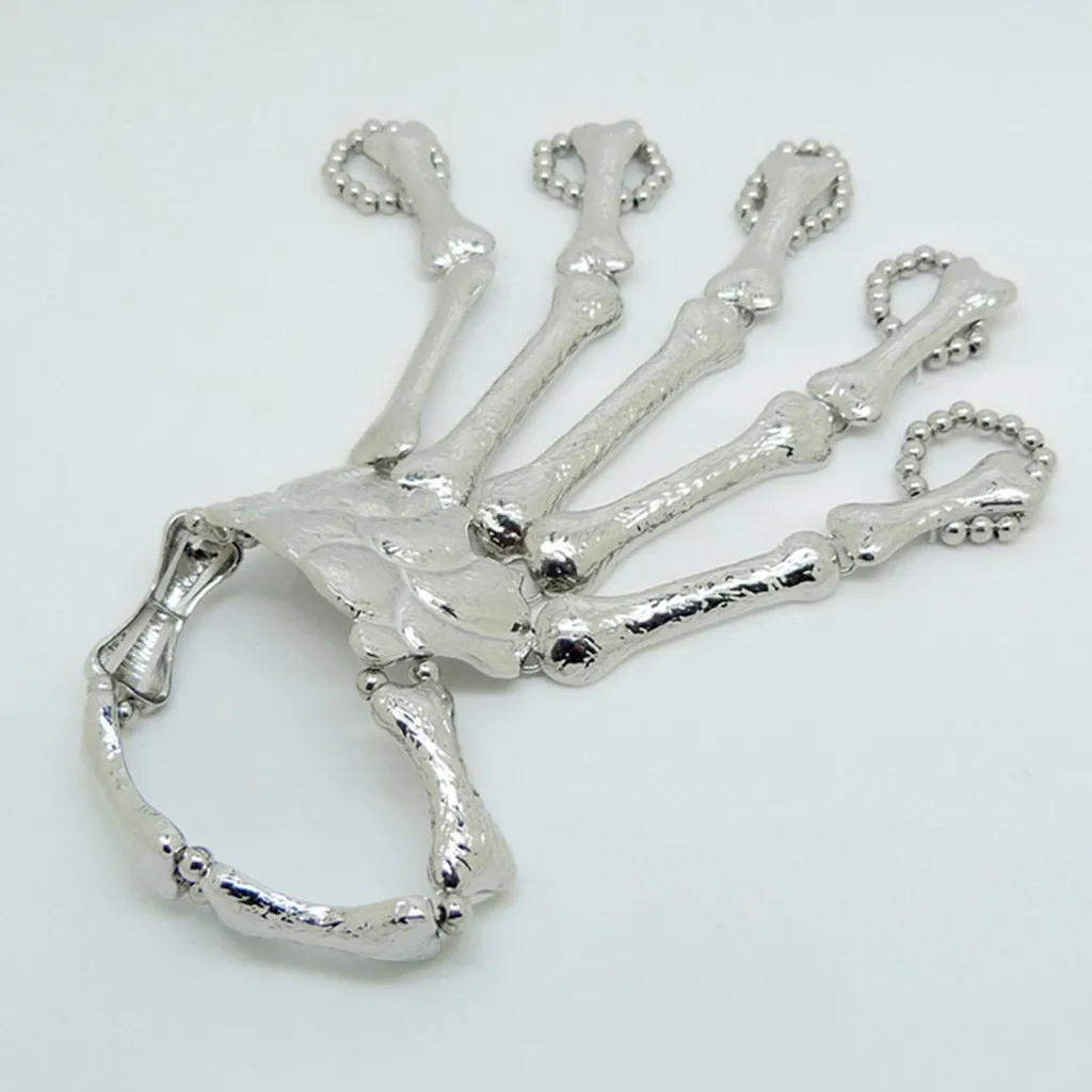 Хэллоуин реквизит подарок Ночной клуб вечерние панк браслет, соединенный с кольцом на пальце Готический Череп Скелет